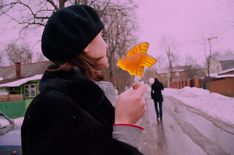 Anima Russa, appunto, sta ad indicare lo spirito di un popolo, la weltanschauung culturale degli abitanti delle piccole e nevose cittadine russe intorno a Mosca, che stimolati dall’artista, ricordano e rivivono le sensazioni infantili date dai lecca-lecca, molto diffusi nelle feste popolari russe e nelle abitudini giocose dei bambini.