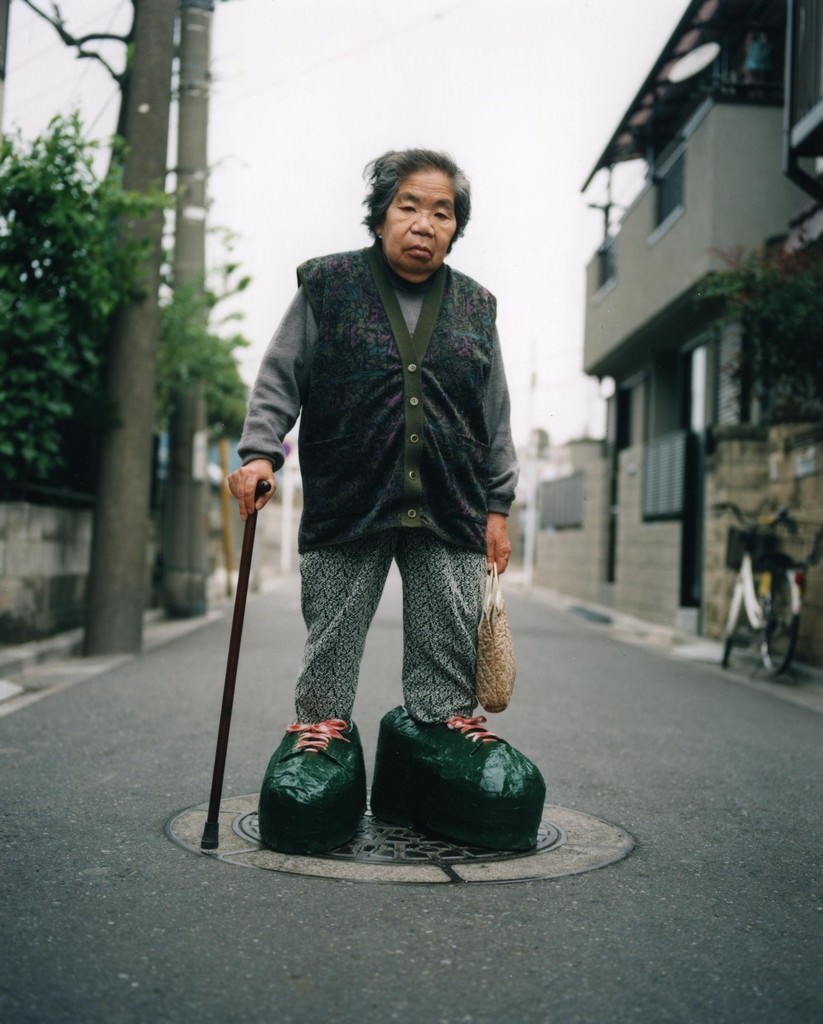 Tatsumi Orimoto rappresenta le problematiche suscitate dall’esperienza del quotidiano. Scapolo e senza figli, Orimoto vive da anni solo con l’anziana madre malata di Alzheimer e di depressione, nei confronti della quale rivolge ogni sua attenzione ed ogni sua cura. Nella performance romana egli si coprirà il volto con del pane – alimento della vita per tutti – fino a privarsi della naturale visione annullando la propria soggettività. Così l’artista attraverserà Roma creando una sorta di cortocircuito esistenziale tra se stesso, la folla nel vissuto quotidiano e i luoghi dell’antichità. Un’operazione di mitologia individuale quindi, dove l’opera si fa davvero rappresentazione diretta della propria vita al di là di ogni mediazione oggettuale così come di qualsivoglia meditazione formale. L’artista, come di consueto, dissacra la tradizionalità del manufatto artistico amplificando la radice duchampiana della teatralità in arte.