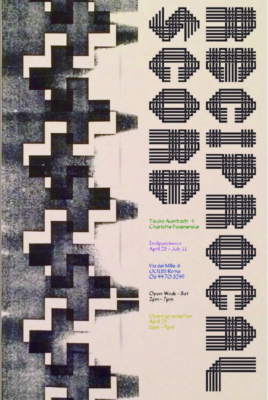 Dopo diversi soggiorni preparatori a Roma, Tauba Auerbach ha concepito per gli spazi di Indipendenza una mostra che prendesse la forma di un dialogo con le opere dell’artista Charlotte Posenenske, scomparsa 30 anni fa.