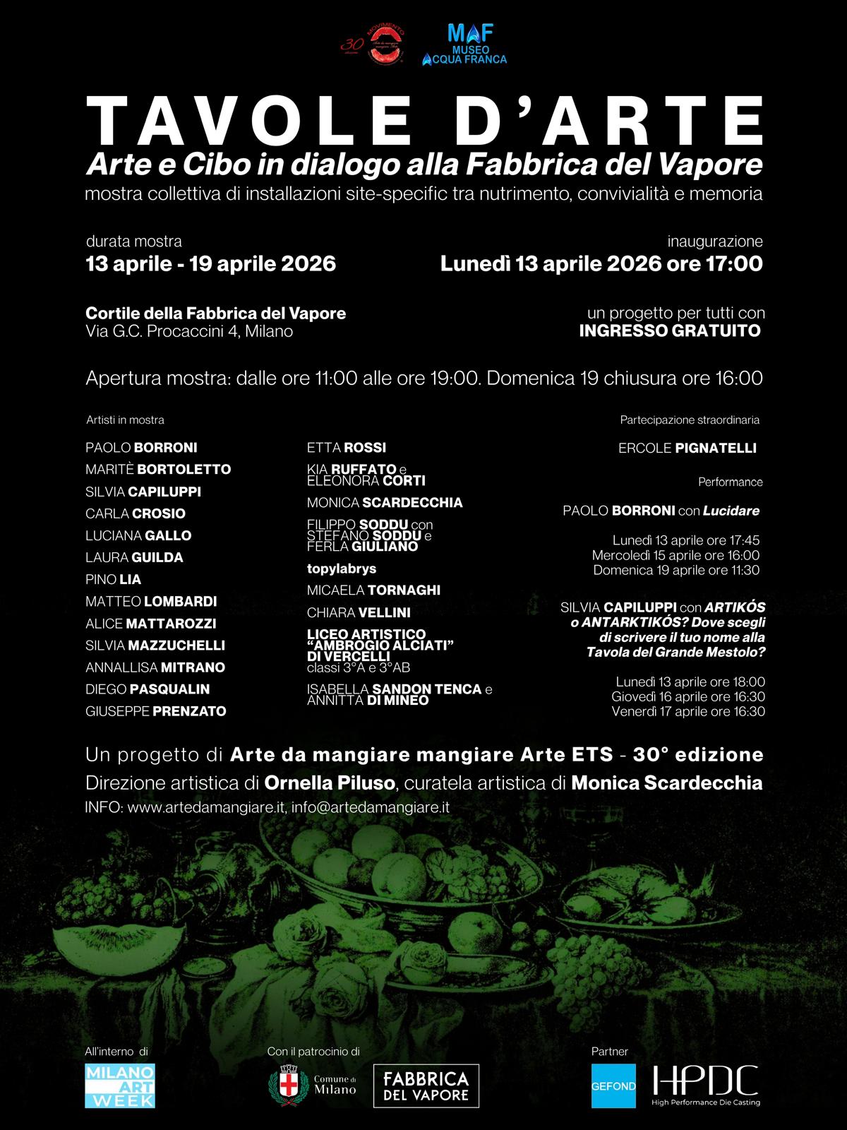 Tavole d’Arte. Arte e Cibo in dialogo alla Fabbrica del Vapore