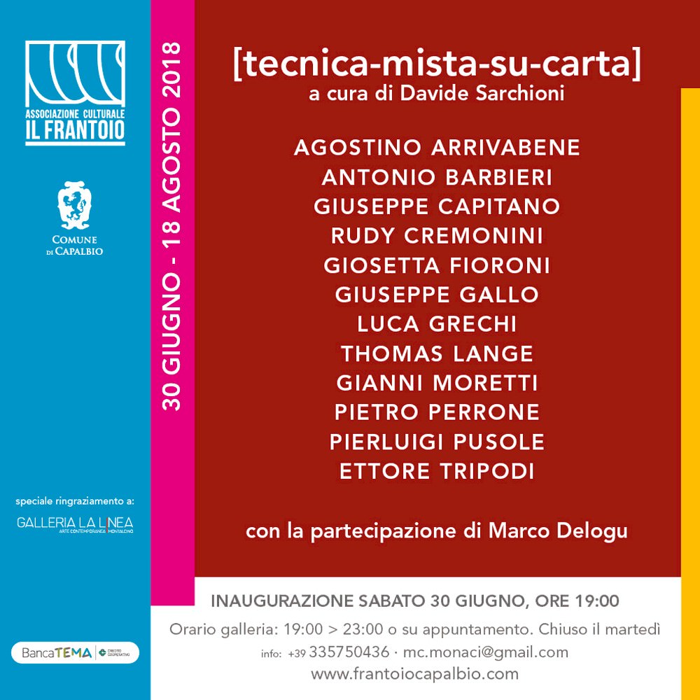 [tecnica-mista-su-carta] è la descrizione generica impiegata nelle didascalie che solitamente accompagnano la riproduzione di un’opera in un libro o l’opera stessa in una mostra. Tale definizione, come titolo di questo progetto espositivo, non intende proporre un’indagine rivolta al “medium carta” ma a l’ “opera su carta”, dove la carta è utilizzata anzitutto come supporto su cui l’artista ha realizzato il proprio lavoro con la libertà di sperimentare