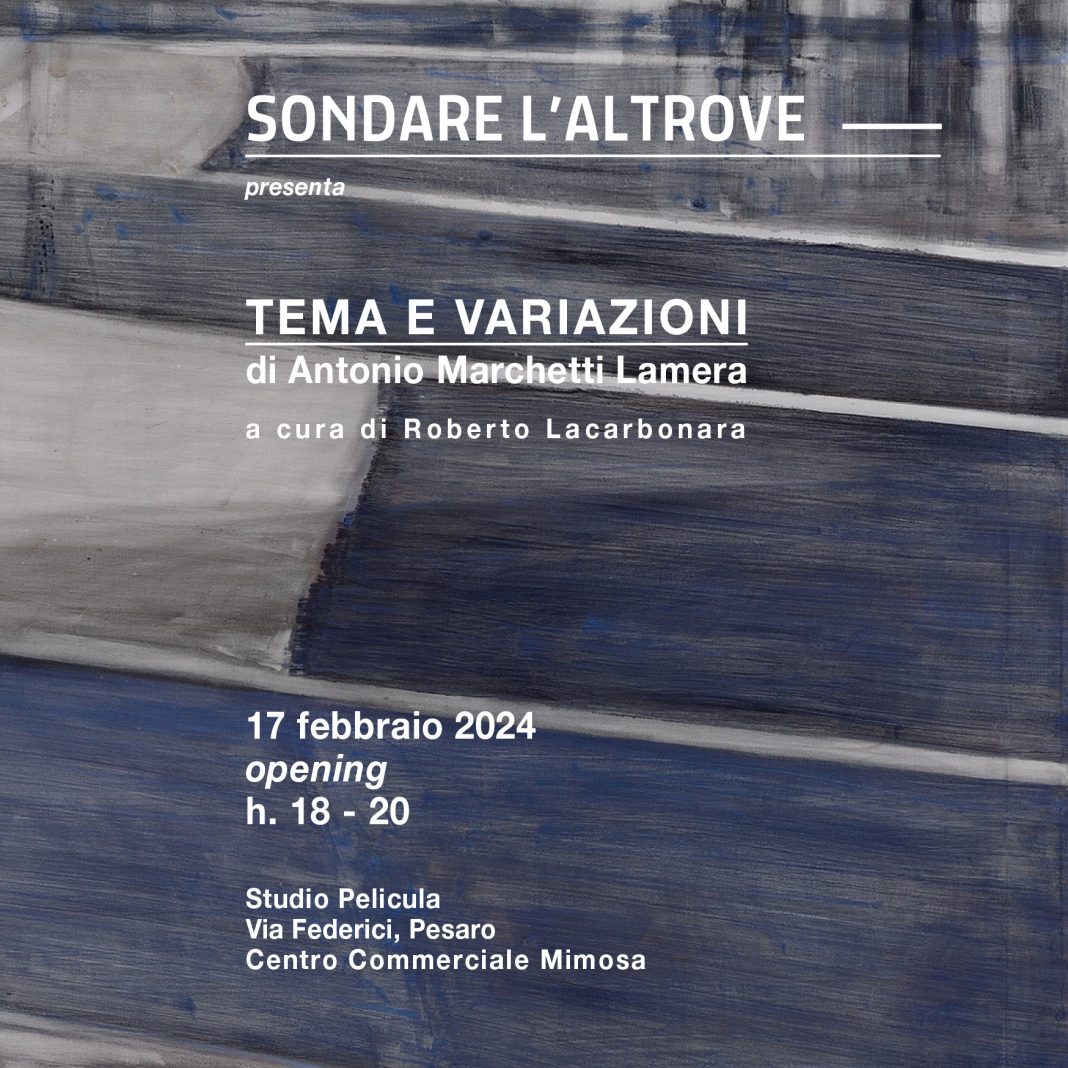 Sabato 17 febbraio 2024 alle ore 18 torna SONDARE L’ALTROVE con Tema e Variazioni, mostra personale di Antonio Marchetti Lamera a cura di Roberto Lacarbonara. All’interno dello studio pesarese del fotografo Michele Alberto Sereni continua il percorso di dialogo tra le arti iniziato nel 2018 con un nuovo appuntamento, della durata di una singola giornata, il cui protagonista è un artista lombardo che presenta un progetto installativo inedito. L’evento è patrocinato da Pesaro 2024 Capitale italiana della Cultura e organizzato da Pelicula Studio Fotografico.