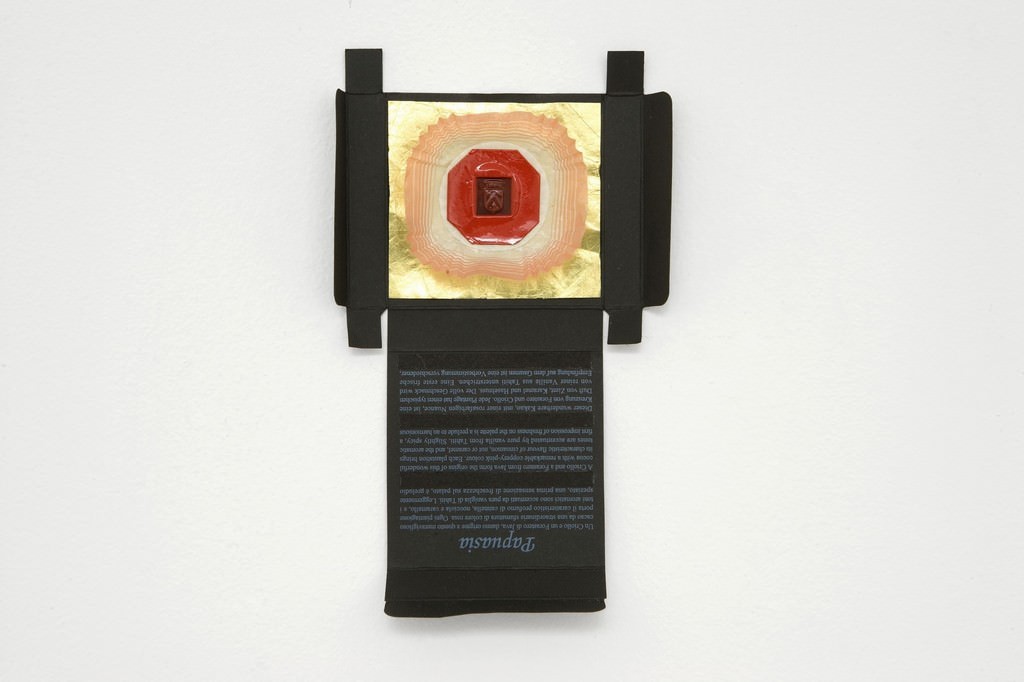 "Noi vediamo il nostro posto nel mondo attraverso i filtri delle nostre costruzioni: la nostra cultura, esperienza personale, valori e aspettative. Nelle mie opere le forme sono suggerite allo spettatore attraverso veli di collage, colore e texture. Ho integrato i miei ricordi con fotografie di pareti scabre, vicoli misteriosi e seducenti portali, giornali bruciati recuperati in una villa, pagine di un vecchio romanzo italiano comprato in un mercato delle pulci. Questi sono usati insieme ad altre immagini, pubbliche e più personali, per evocare un luogo, un episodio o un momento nel tempo."[MK]