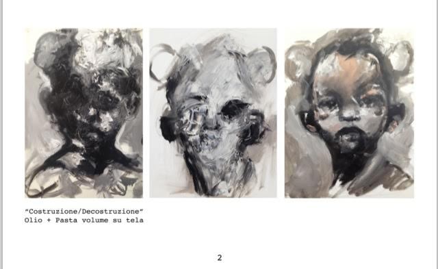 L’opera Rear Window di Vanni Meozzi è invece una grande finestra tradizionale dell’architettura industriale pratese, opposta e speculare a una realmente esistente nel primo luogo dove l’opera è stata esposta. Immagine di un tempo immobile, la finestra ha vetri smerigliati incorniciati in una rete metallica e crea l’effetto di minutissimi pixel. Costruzione e decostruzione sono i temi principali del lavoro di Silvia Paci che sfalda le figure sotto violente pennellate, restituendoci il complesso meccanismo dell’identità attraverso volti e corpi inquieti.