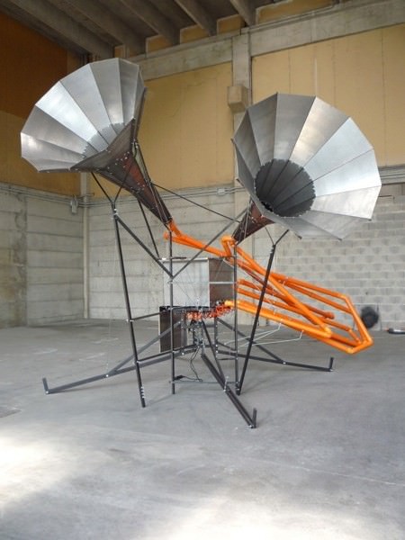 Un’imponente scultura, un’installazione sonora, nella quale la presenza fisica della struttura metallica incontra quella immateriale del suono, dando così vita ad un’opera extra-ordinaria e imprevedibile. LK110A, si presenta come un organismo nuovo nello spazio pubblico, un sistema complesso, che generando rumore, introdurrà una singolare presenza nel paesaggio urbano, producendo un nuovo stato di tensione nei passanti. Il suono si fa spazio: stordisce e sfiorisce.