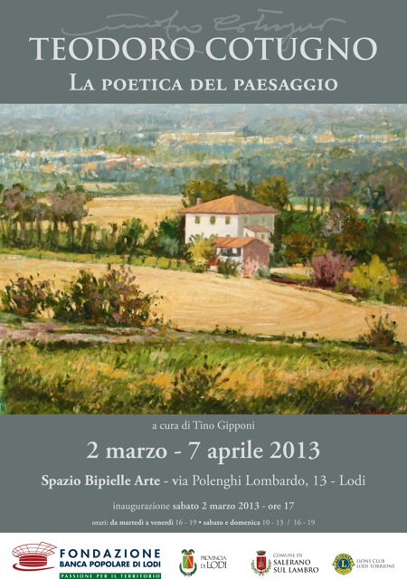 “Ci sono pittori che restano fedeli al motivo scelto con obbediente osservanza, senza alcuna flessione. Teodoro Cotugno, con un nome di pieno fasto bizantino, da oltre trent’anni è uno di questi con la sua pittura di paesaggio, di “paesista” della natura, sua sorgente ispiratrice e primamente della nostra campagna […]”: è con queste parole che Tino Gipponi, critico e scrittore, apre il catalogo della mostra Teodoro Cotugno. La poetica del paesaggio da lui curata.