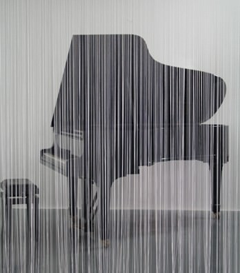 La galleria Pio Monti presenta “FREQUENCE - From Richard Feynman to György Ligeti” un’opera di Teresa Iaria. Frequence è un progetto che nasce da una riflessione sulla nozione di “campo”, inteso come oneness, totalità degli eventi possibili, composto da una infinità di onde e traiettorie. La nostra percezione comune dell’universo fisico non è altro che il più probabile tra gli infiniti stati virtuali, seguendo l’idea di Richard Feynman sulla meccanica quantistica come “somma dei cammini”. L’installazione prevede due grandi disegni in cui una piccola testa guida una infinità di capelli ondeggianti, proiezione delle infinite traiettorie possibili. Al centro è posta una scultura composta da fili di seta che sembrano misurare la frequenza dei suoni che si percepiscono nella stanza. La frequenza viene rivelata da un intervallo di tempo che si ripete identico o quasi identico, così i fili ordinano ed esplicano il flusso caotico dei cammini ondulatori e delle loro vibrazioni. Il centro ideale dell’installazione è una composizione di György Ligeti. La complessa polifonia di ciascuna parte è incorporata in un flusso armonico musicale elastico in cui gli elementi di un tema determinano una forma melodica su diversi livelli costruendo frattali ritmici ed armonici sovrapposti a strati l’uno sull’altro, allontanandosi sempre più da una concezione "lineare" per arrivare ad una "non-lineare" dove più elementi coesistono e si rivelano intrecciati nello spazio e nel tempo.
