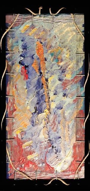 Dipinti: circa 40 opere in acrilico su cartoncino, racchiuse in semplici cornici di legno naturale, con un intervento diverso per ciascuna opera, fatto di viti e fili differenti .