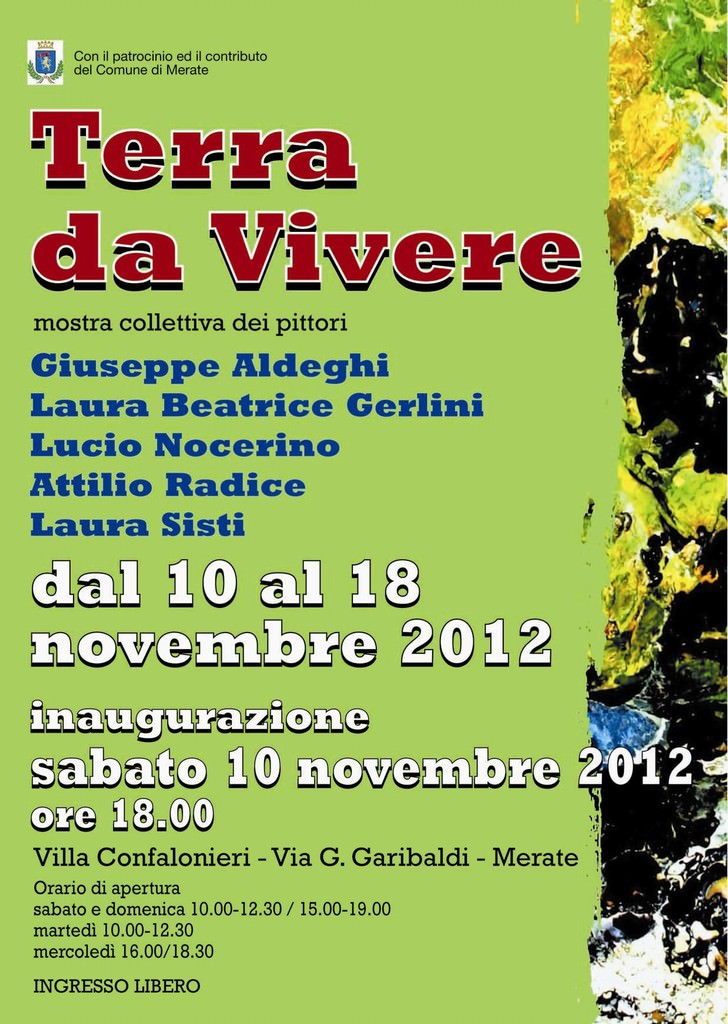 La mostra si terrà presso Villa Confalonieri, sita in via G. Garibaldi a Merate (Lecco). L'inaugurazione sarà sabato 10 novembre alle ore 18.00. La Mostra si svolgerà dal 10 al 18 novembre 2012 e osserverà i seguenti orari di apertura: sabato e domenica 10.00-12.30/15.00-19.00; martedì 10.00-12.30; mercoledì 16.00-18.30. L'ingresso è gratuito. La mostra ha il patrocinio ed il contributo del Comune di Merate e verrà presentata al pubblico dal pittore Massimo Bollani.