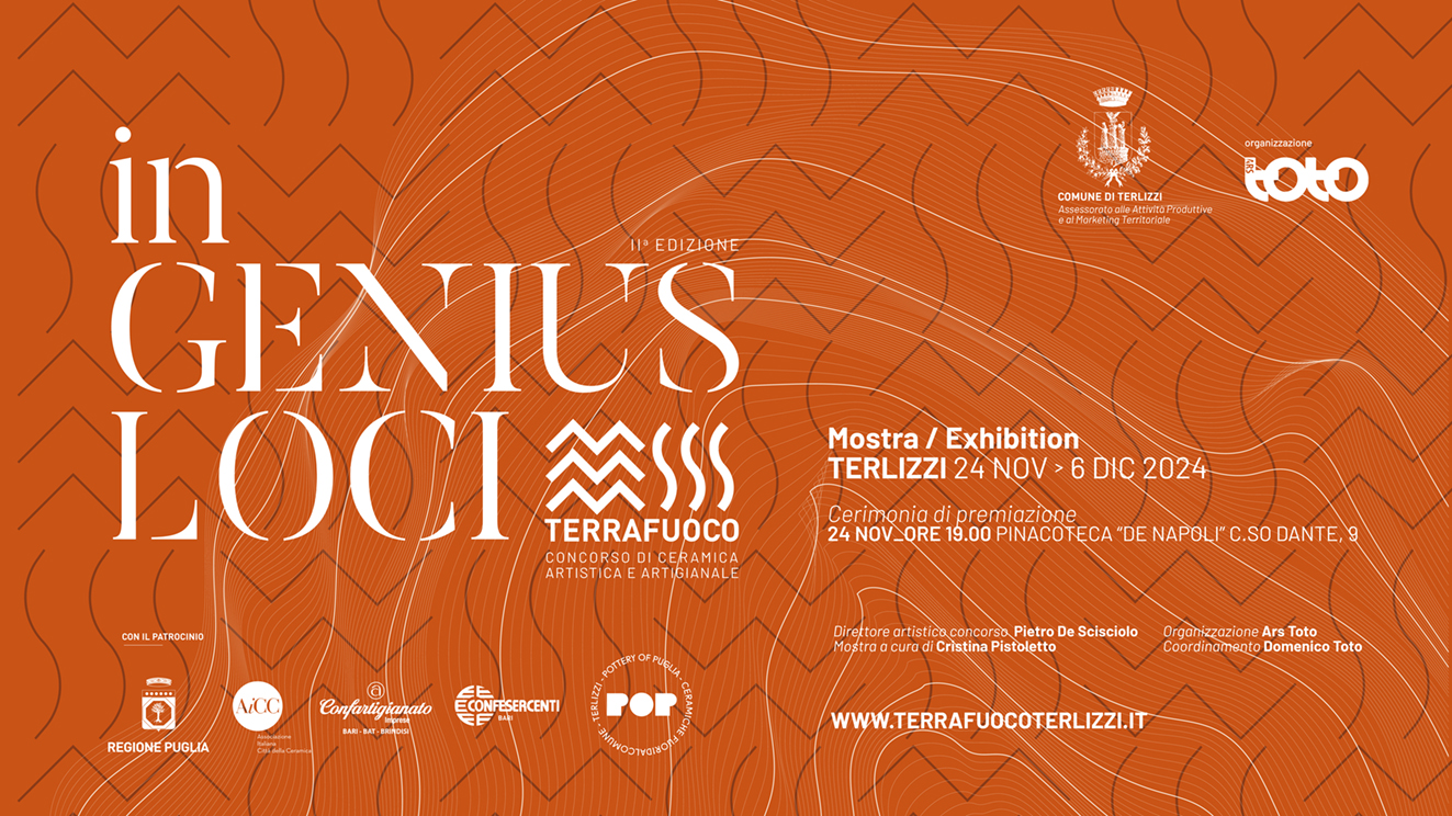 esperienze con realtà, sia produttive che amministrative, di altre città di una rete in cui siamo entrati con impegno, divenendo parte finalmente all'associazione italiana Città della Ceramica. Decisiva è stata la strategia politica della Regione Puglia che ha sostenuto una visione concreta che ha portato risorse importanti per le Città della Ceramica di Puglia, e che ci ha condotti fino alla creazione del marchio "POP - Pottery of Puglia, ceramica di Puglia" . Lasciatemi ringraziare la comunità, quella dei ceramisti e degli artigiani che stanno sostenendoci. Il risultato di tanto lavoro che rende Terlizzi attrattiva si vede anche nella qualità delle opere selezionate e nella provenienza degli artisti che da tutta Italia si sono iscritti ".