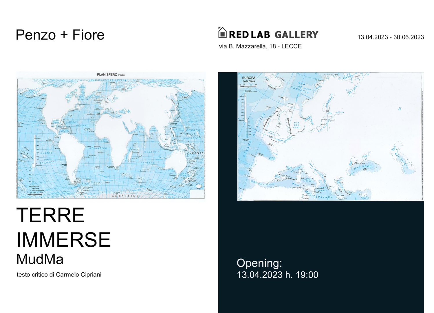 Giovedì 13 aprile, alle ore 19:00, negli spazi di Red Lab Gallery a Lecce, in via Bonaventura Mazzarella 18, prende il via la mostra “Terre Immerse”, di PENZO+FIORE, duo artistico veneziano nato nel 2009 ed oggi approdato ad una ricerca plurima, connotata dall'impiego di materiali differenti e linguaggi eterogenei (scultura, installazioni, fotografia, video, performance).