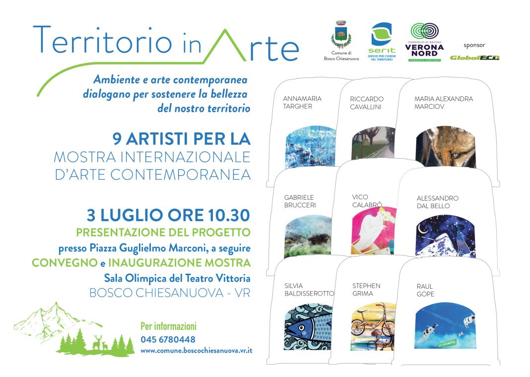 Inaugurerà il 3 luglio alle 10.30 a Bosco Chiesanuova presso il Teatro Vittoria con una vernice che si annuncia pirotecnica, la mostra collettiva “Territorio in Arte”, titolo medesimo del progetto che verrà presentato nella piazza Guglielmo Marconi e approfondito a seguire nel Convegno all’interno della Sala Olimpica del Teatro Vittoria.