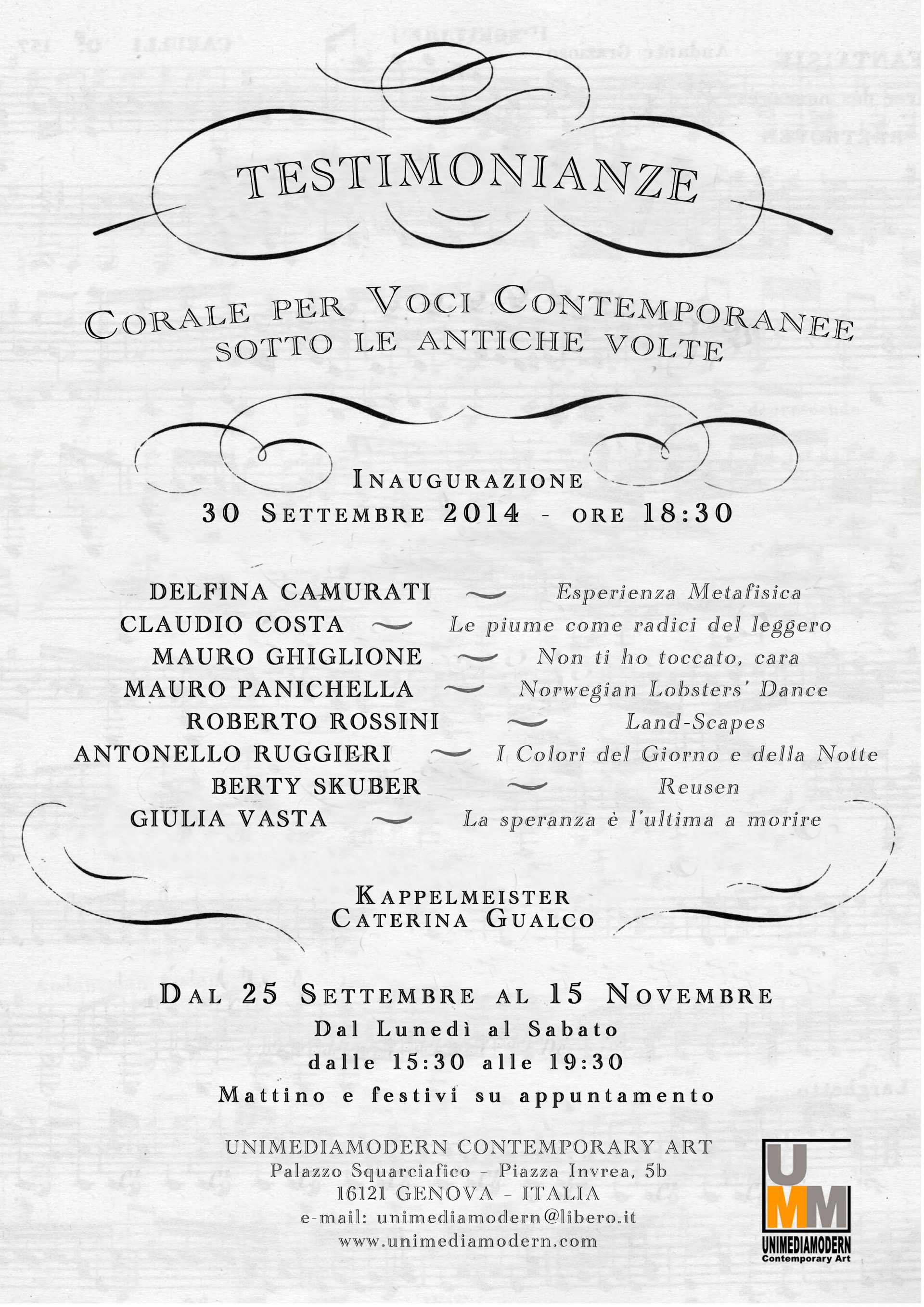 Testimonianze. Corale per Voci Contemporanee sotto le antiche volte