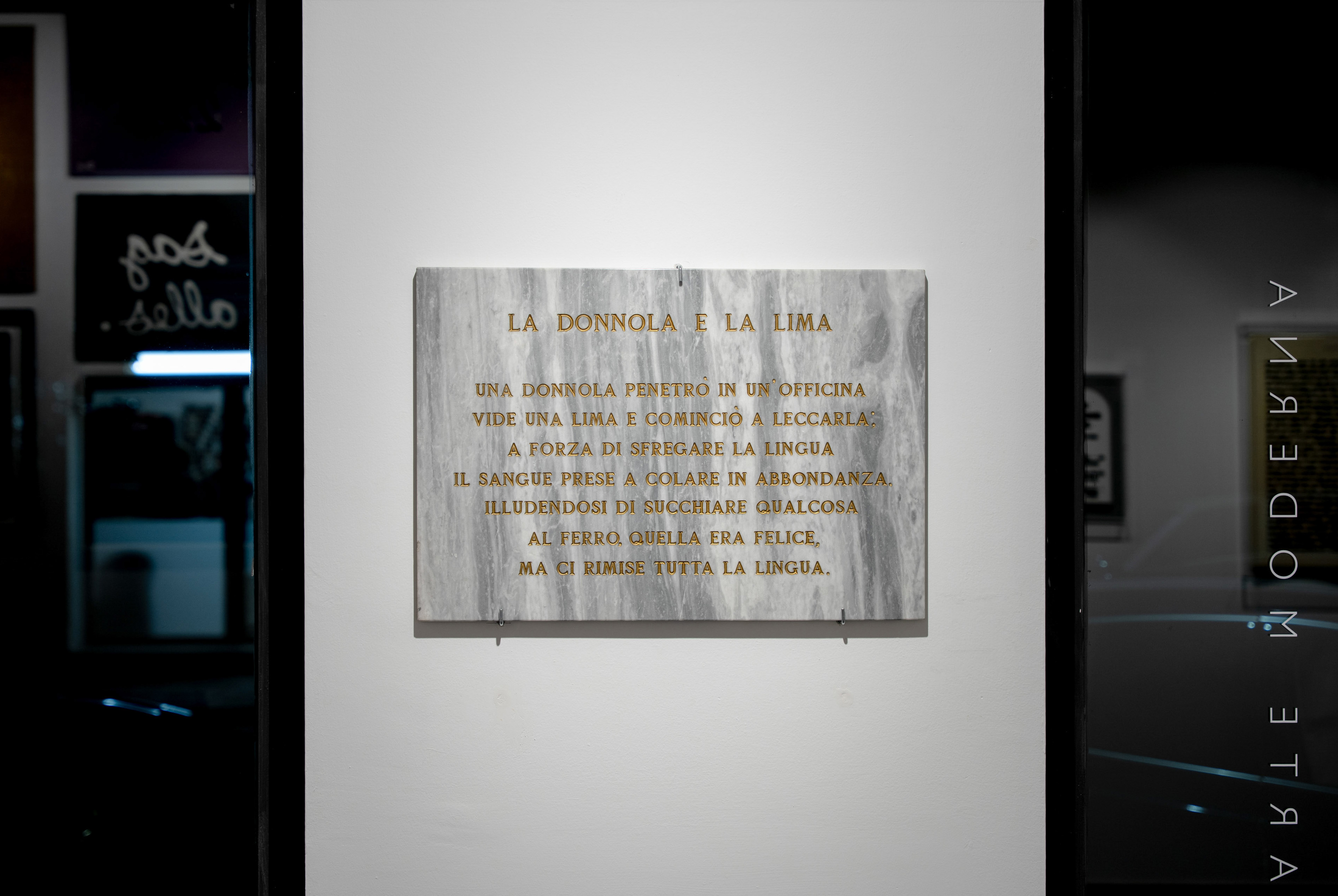 discorso verbo-visuale. Le lapidi di Salvo sono assertive e ironiche, con declinazioni anche narrative,
