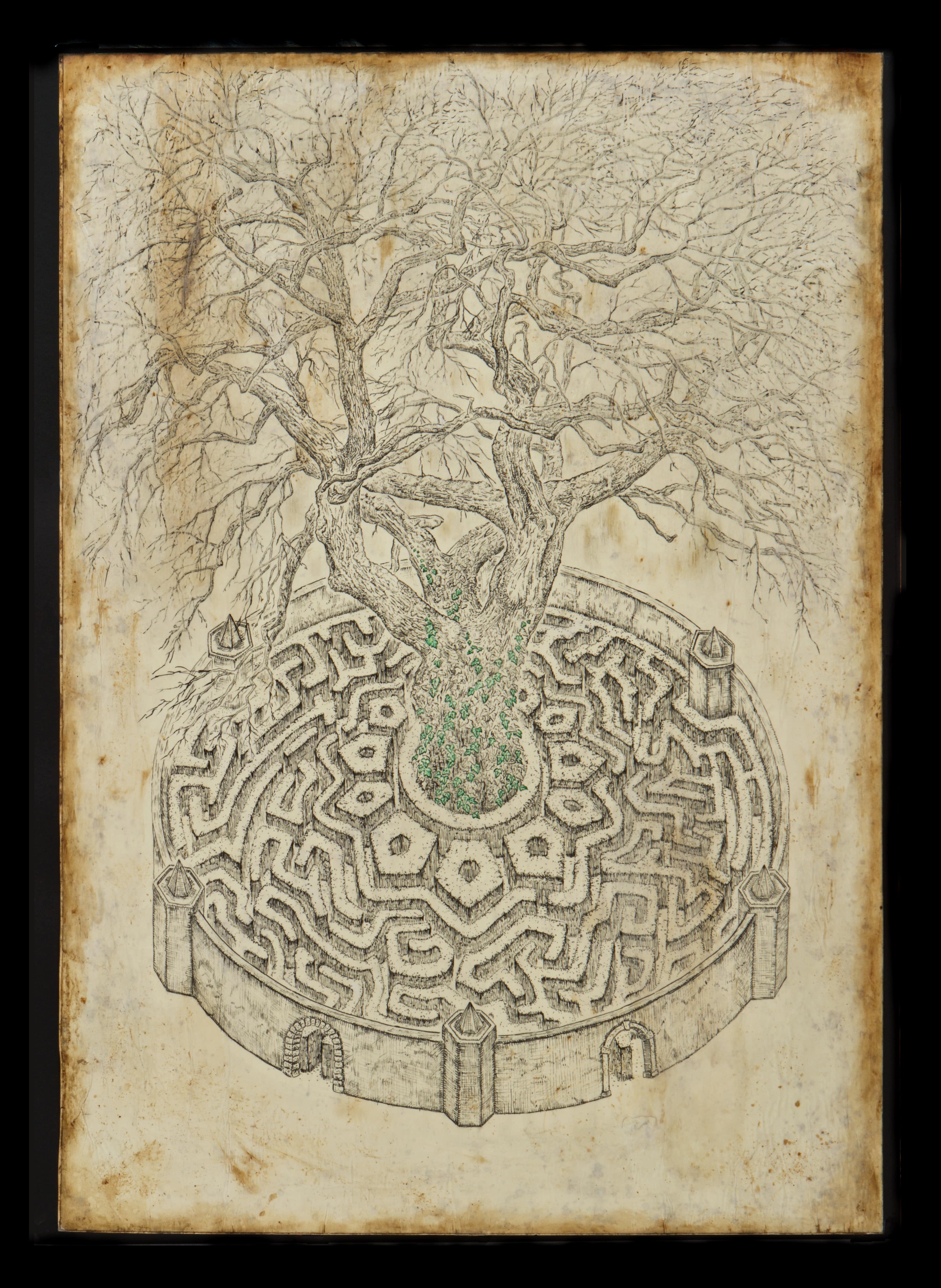Gran parte delle opere presenti a Urbino, alcune delle quali inedite, sono realizzate con una particolare tecnica di invecchiamento del supporto cartaceo, con cui il pittore intende ricollegarsi al vissuto ancestrale dell’umanità, che procede ed evolve attraverso i secoli. Da qui nasce una cifra stilistica che sta trovando unanimi consensi di pubblico e critica e che lo ha portato a vincere il “XVII Premio Coinè per l’arte” riservato agli artisti presenti alla Vernice Art Fair 2019 di Forlì.