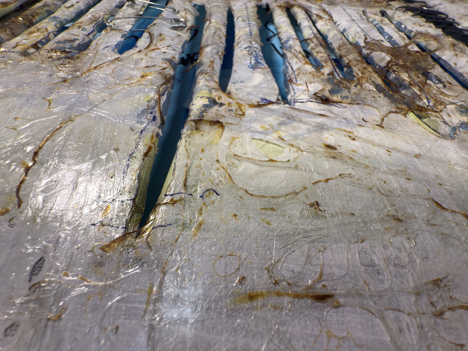 Specialmente nelle opere della serie “Blue scares... but nothing to worry about”, il soggetto giace su un piano interno alla superficie del quadro, marcando una netta distanza col mondo esterno. Il rapporto con una realtà quasi aliena si svolge in una ritmicità di trauma e ricerca, contenimento e negazione. Queste ultime sono fisicamente illustrate da suture fatte con materiali di fortuna (filo nero, spille, fascette), usate come la colla sulle ferite in guerra per l'urgenza del momento. Qui, il taglio tipico di Fontana non si accontenta dello spazio in sé, non è solo un'apertura verso l'oltre. Tenta invece un rapporto bidirezionale, una tensione attiva tra l'osservatore e l'oggetto dell’osservazione. È una presa di coscienza da parte dell'osservatore: de facto, è quasi solo dal trauma raffigurato dalla ferita che si intravede la mente neurodivergente. Sono solo le ferite più larghe ad essere suturate, proprio per impedire una nuova dilatazione di reciproca incomprensione tra mente neurodivergente e realtà aliena, raffigurata da strato plastico.