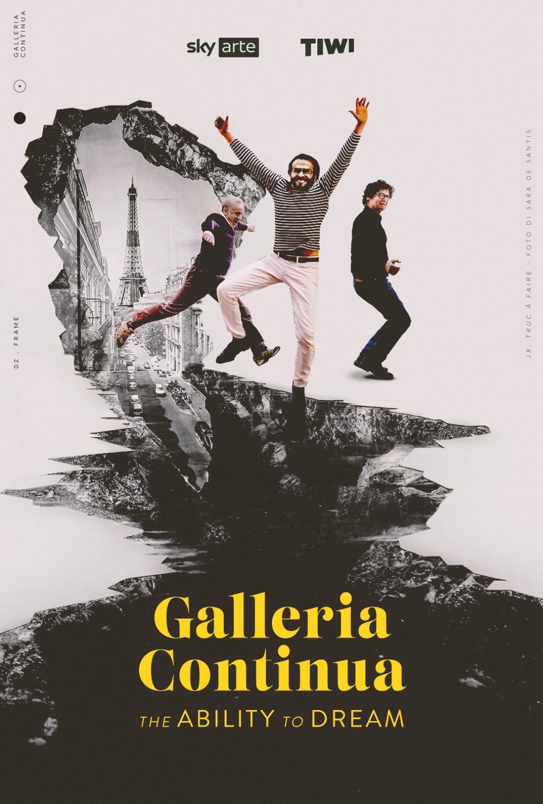 Mario Cristiani, Lorenzo Fiaschi e Maurizio Rigillo, soci fondatori di Galleria Continua e di Associazione Arte Continua APS, desiderano ringraziare Sky Arte e TIWI per aver voluto raccontare oltre trenta anni di attività attraverso le immagini, i ricordi e le voci di alcuni dei protagonisti di questa incredibile avventura. Insieme agli artisti, agli artigiani, ai curatori e a tutte le persone che in questi anni hanno sostenuto ‘il progetto Continua’, desiderano inoltre ringraziare l’intero team, sia della galleria che dell’associazione, il cui lavoro appassionato e la partecipazione senza riserve, sono il motore che quotidianamente alimenta ‘la capacità di sognare’.