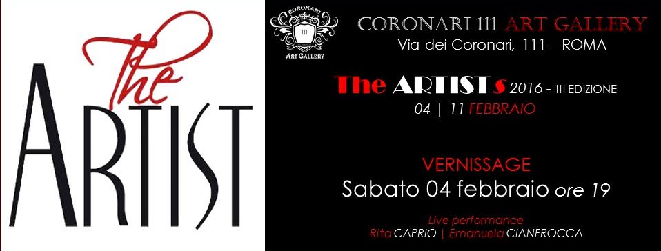 The ARTISTs 2016 – III EDIZIONE è un premio istituito da Coronari 111 ART GALLERY ROMA nel 2014 con l’espressa volontà di selezionare Artisti che, durante l’anno, si sono particolarmente distinti, ed hanno attirato l’attenzione del pubblico, con la qualità della propria produzione artistica.