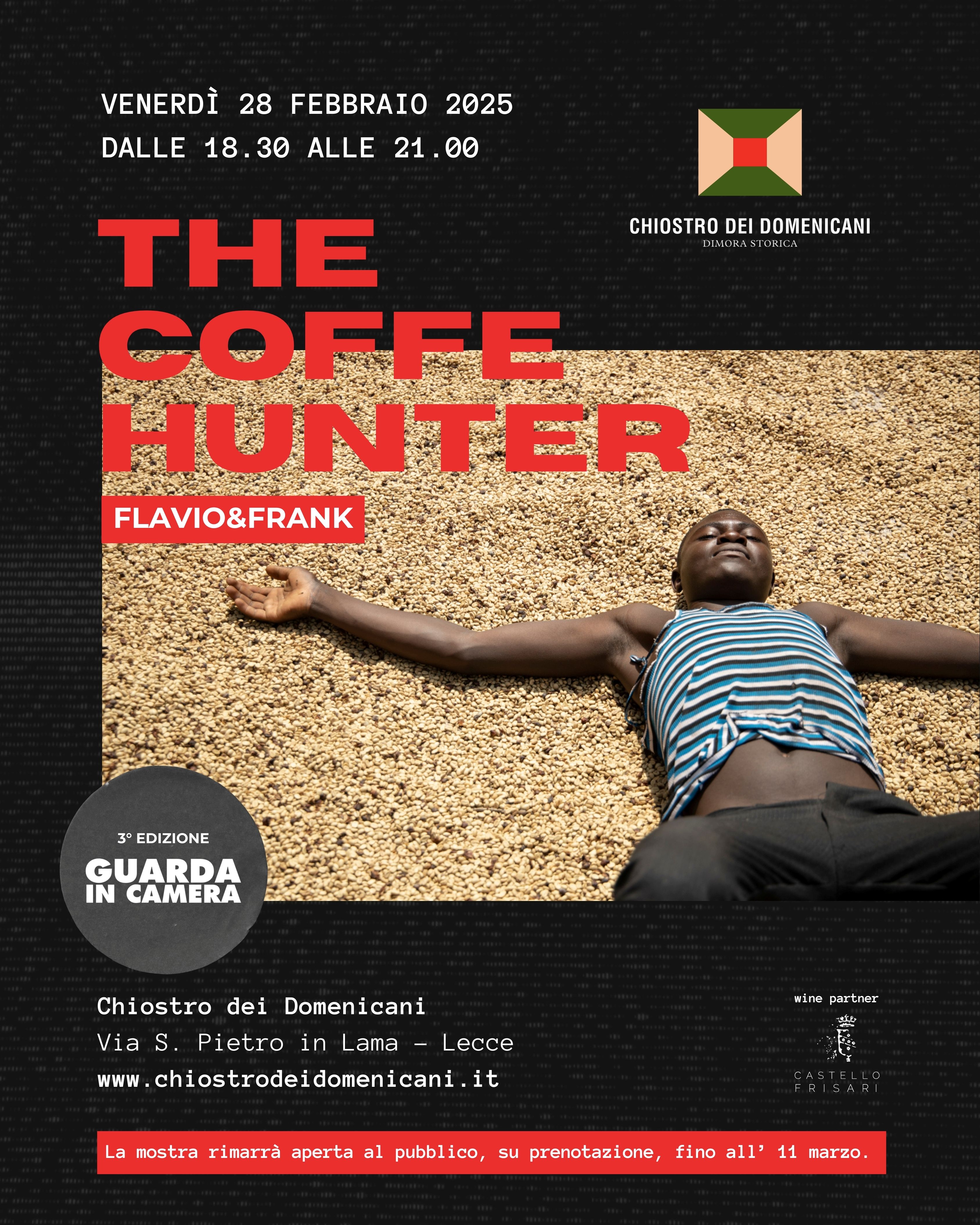Una collaborazione, quella tra il Chiostro e Flavio&Frank, di grande valore: la mostra, infatti, sarà presentata per la prima volta in Puglia e permetterà ai visitatori, attraverso l’intensità delle fotografie, di scoprire uno dei Paesi d’origine del caffè, mostrando i luoghi e le persone che, con il loro lavoro, contribuiscono a diffondere la cultura del buon caffè e a cui questo prezioso prodotto restituisce dignità e prospettive.
