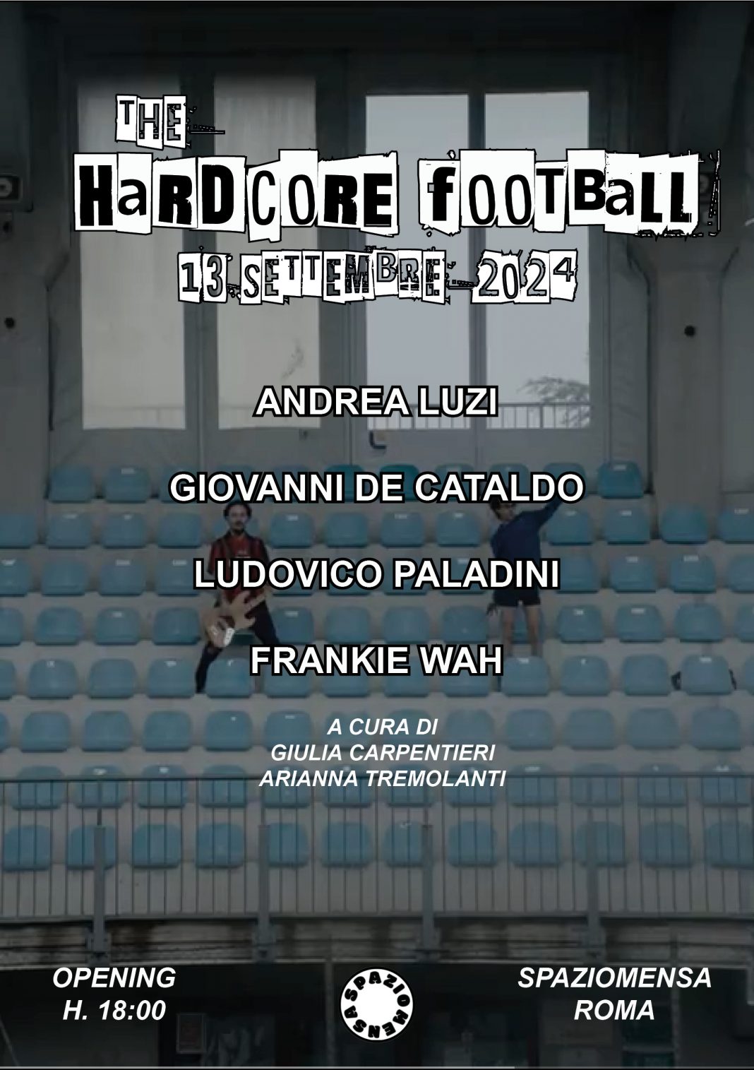 The Hardcore Football celebra con una vena ironica e a tratti decadente un po’ di quel football dream nei suoi processi di transculturazione, che contempla le sfumature estetiche e identitarie con cui la dimensione locale reimpasta quella globale. Appropriata e resa autentica e affettiva. A fare da leitmotiv sonoro a tutta la mostra è una base hardcore punk che riattualizza, esasperandolo in senso identitario, un connubio tra calcio e underground minacciosamente barocco.