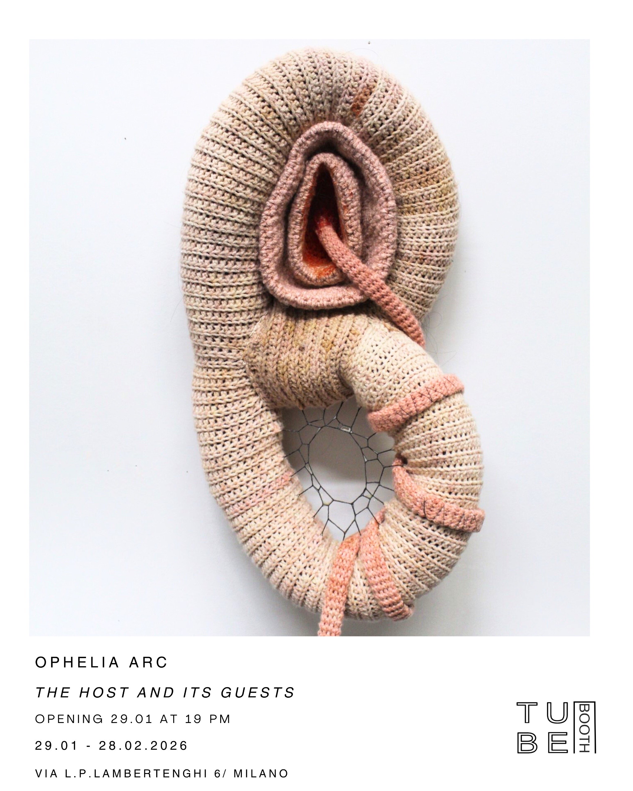 Tube Booth presenta la prima mostra personale in italia dell’artista Ophelia Arc (2001, NY).La mostra presenta sculture tridimensionali realizzate all’uncinetto, attraverso cui l’artista esplora tematiche di genere, maternità, nascita, casa e transizione traumatica tra infanzia ed età adulta
