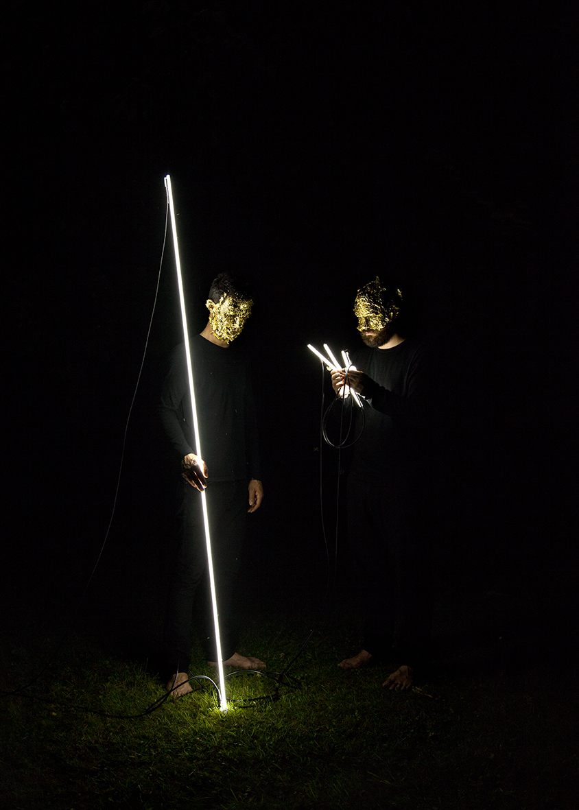 Ludovico Bomben (Pordenone, 1982) presenta uno scatto fotografico preso da Simona Arnone durante la performance Paesaggio con Ferula eseguita nel 2016 dallo stesso Bomben insieme all’amico Michele Tajariol. L’intervento dei due artisti si è orientato verso la decostruzione fisica di Ferula - una scultura al neon realizzata da Bomben - all’interno di una scenografia paesaggistica notturna pervasa di gesti solenni e ritmi lenti e pacati che rimandano alle antiche raffigurazioni sacre.
