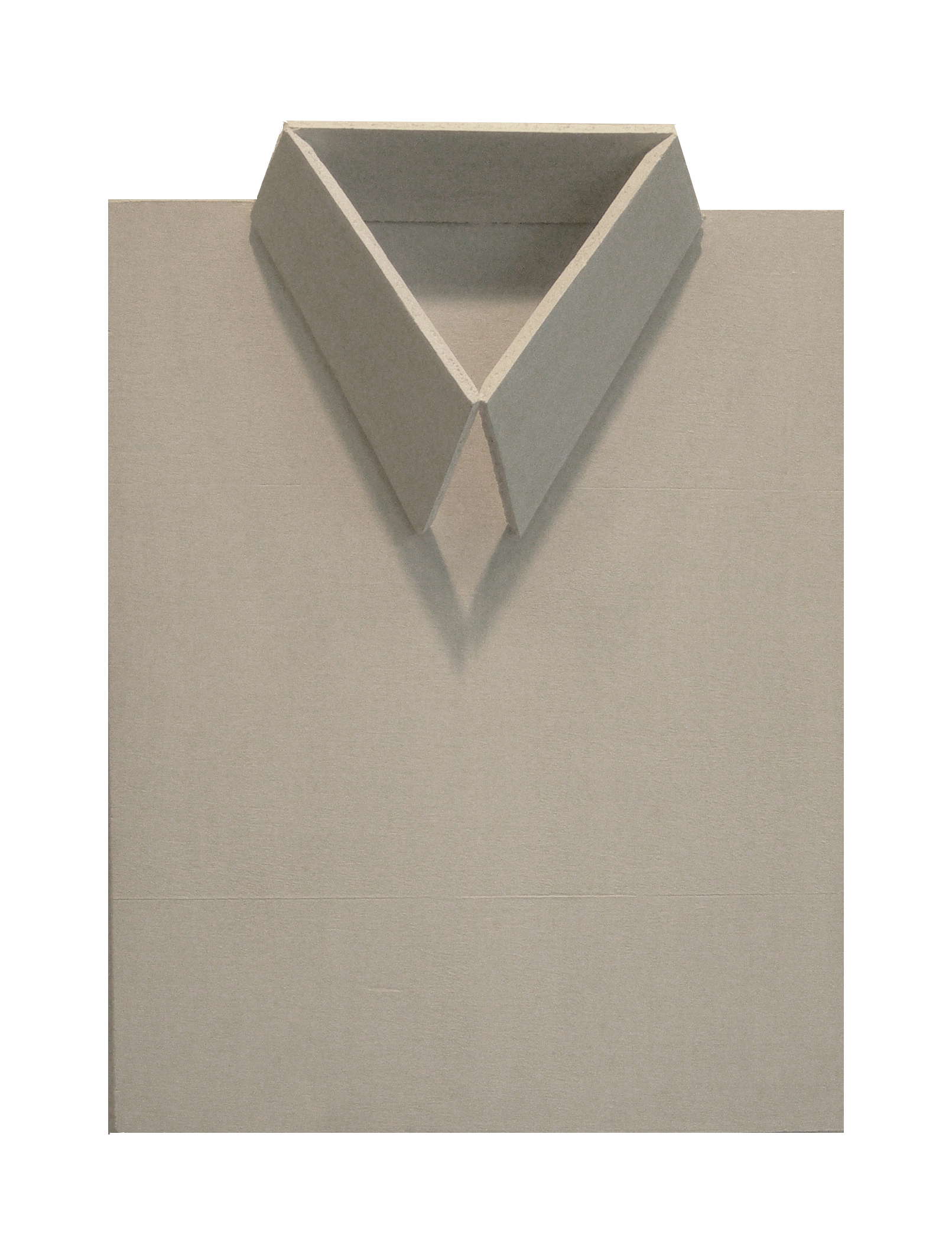 Quattro pezzi di legno rettangolari dipinti di bianco e assemblati tra loco formano Shirt di Claudio Destito (Roma, 1959) a evocare scherzosamente una camicia inamidata e piegata, pronta per essere infilata in valigia, una riflessione ironica sulla metafora della vita come viaggio senza fine.