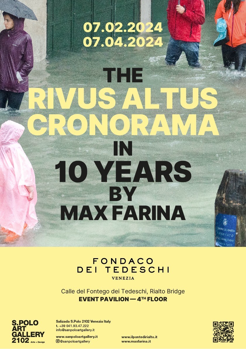 Dal 7 febbraio al 7 aprile 2024 il Fondaco dei Tedeschi a Venezia, in collaborazione con la San Polo Art Gallery, ospita al quarto piano l’installazione fotografica THE RIVUS ALTUS CRONORAMA-IN 10 YEARS, da un progetto fotografico dell’architetto e fotografo Max Farina.