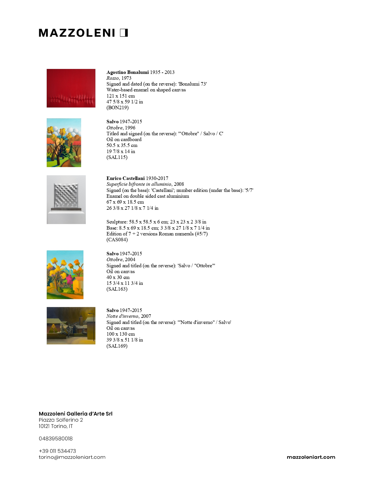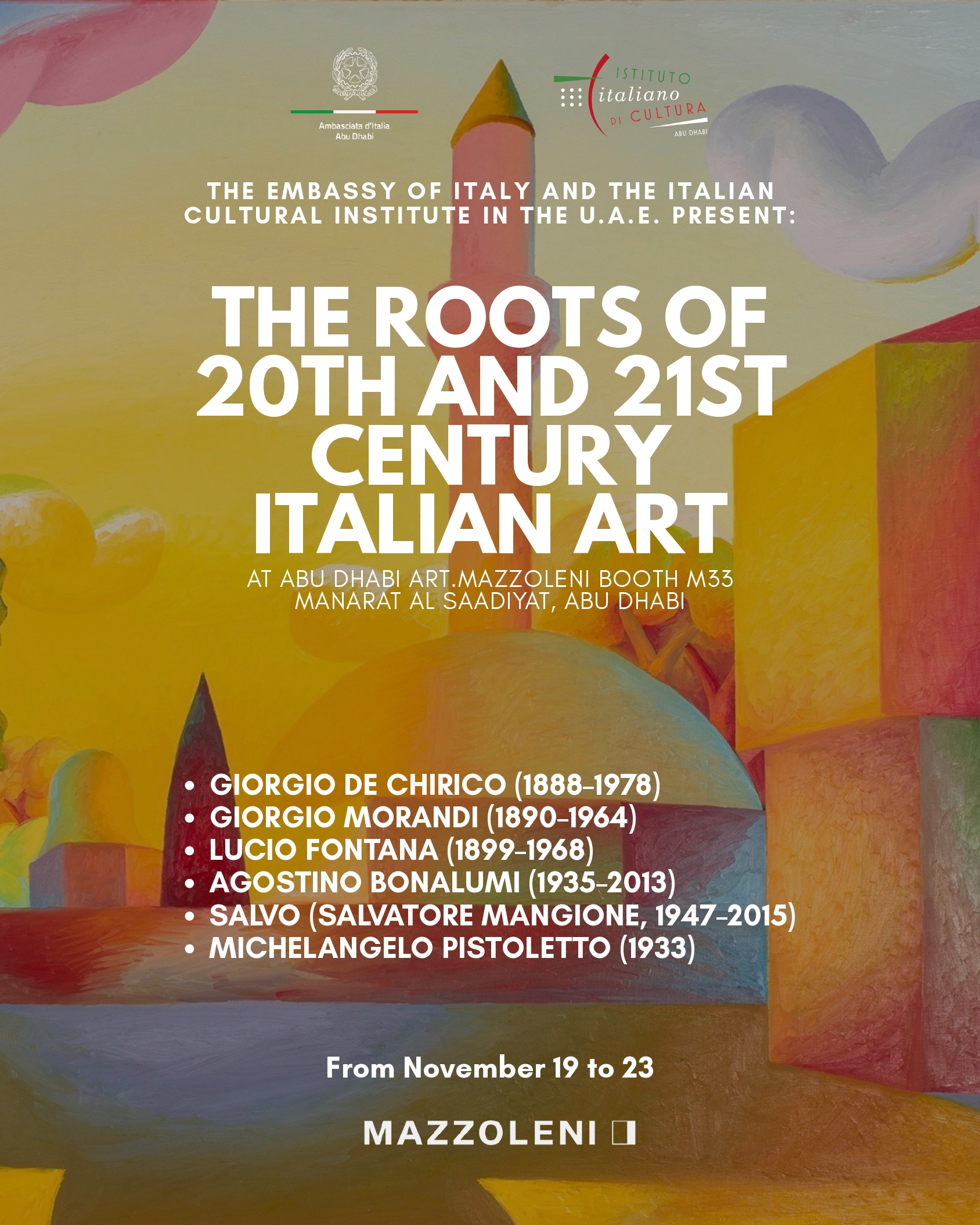 L’Istituto Italiano di Cultura e l’Ambasciata d’Italia ad Abu Dhabi, insieme alla Galleria Mazzoleni, partecipano alla 17ª edizione di Abu Dhabi Art con un’esposizione unica dedicata a sette grandi maestri dell’arte italiana moderna e contemporanea