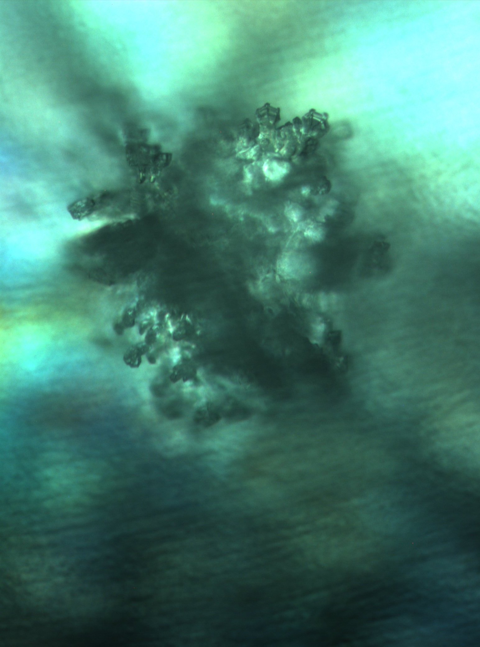 Il lavoro di Puccia si muove in equilibrio tra arte e scienza, in linea con la visione di Gaston Bachelard che, in L’acqua e i sogni, descrive l’acqua come un archetipo che abita l’immaginazione umana. L’artista trasforma la natura in un linguaggio vivo che rivela la sua dimensione più intima restituendo al visitatore l’esperienza di un dialogo interiore con il mondo vegetale, diventando coscienza condivisa. “Il microscopio non è stato solo uno strumento scientifico, ma un passaggio verso una dimensione più intima della natura. Ho avuto la sensazione di osservare l’acqua del mio stesso corpo, di riconoscere nei cristalli e nei colori un linguaggio simbolico: un dialogo sottile tra la mia interiorità e la memoria della pianta.”, racconta Alessandro Puccia.