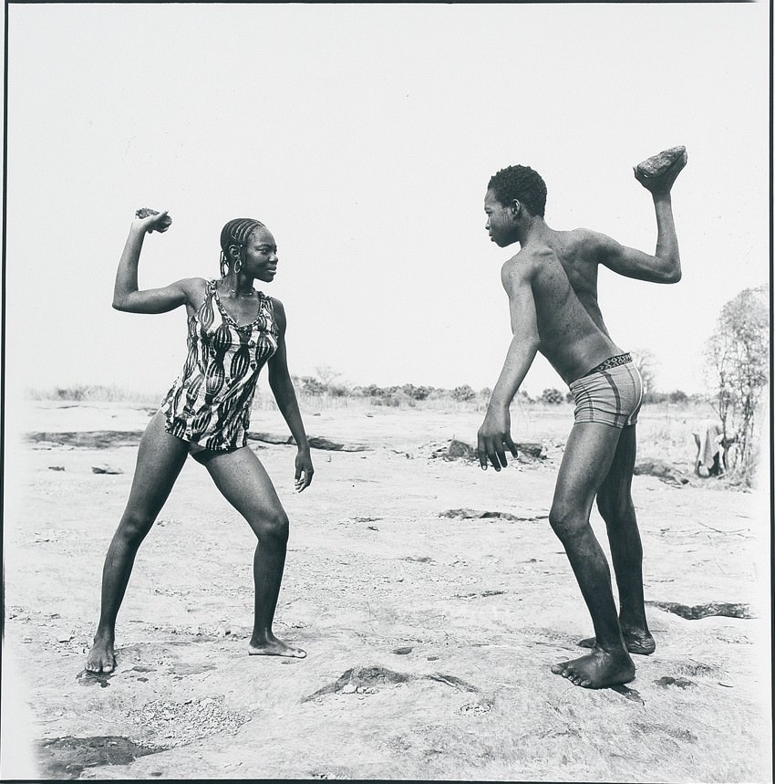 L’arte di Bodo aspira a cambiare il corso della storia. Dipingendo tutto ciò che lo circonda, con gli anni il suo lavoro, intriso di un ascetismo mistico che aspira a migliorare il mondo, ha assunto i tratti di un registro di cronaca contemporanea. Le fotografie di Depara testimoniavano la vita a Kinshasa, quando il tempo era scandito dai ritmi della rumba e del cha-cha-cha. I grandi dipinti di Cyprien Tokoudagba, colorati rebus, affondano le loro radici nella tradizione del Benin, sua terra d’origine. L’artista si dedica anche alla scultura in cemento e alla decorazione di edifici pubblici e privati. Le cartoline di Frederic Bruly Bouabre', protagonista oltre dieci anni fa di una spettacolare mostra con Alighiero Boetti, realizzate con penne a sfera e pastelli a cera, sono rappresentazioni concrete di pensieri, ricordi, sogni, paesaggi, tradizioni, miti. Bodys Isek Kingelez focalizza invece l’attenzione sulla condizione umana: assemblando piccole sculture in cartone e plastica inventa ideali metropoli le cui strade, parchi, stadi e monumenti rispecchiano il desiderio di rigenerazione. Come Tokoudagba, anche Chéri Samba dedica la sua poetica – su billboards, fumetti, pittura su materiali di riciclo - alla gente di Kinshasa, ai drammi di un popolo che vive con fatalismo e ironia la propria difficile condizione. Monumentale era l’archivio fotografico di Seydou Keita, da cui solo negli ultimi anni sono stati riportati alla luce migliaia di negativi, immagini dalla precisa impostazione formale, dal carattere intimo e familiare, su singoli individui e gruppi di persone, che testimoniavano la contraddizione tra voglia di occidente e modernità e rispetto delle tradizioni locali, intrise di tribalismo. Con la pittura Moke rappresenta gli aspetti più scanzonati della vita in città - i bar, i ristoranti, le feste di quartiere, le cerimonie pubbliche. Stessa gioia che trapelava nelle fotografie di Malick Sidibé: sorrisi spontanei, balli europei e cubani, feste che durano fino all’alba, abiti all’occidentale.