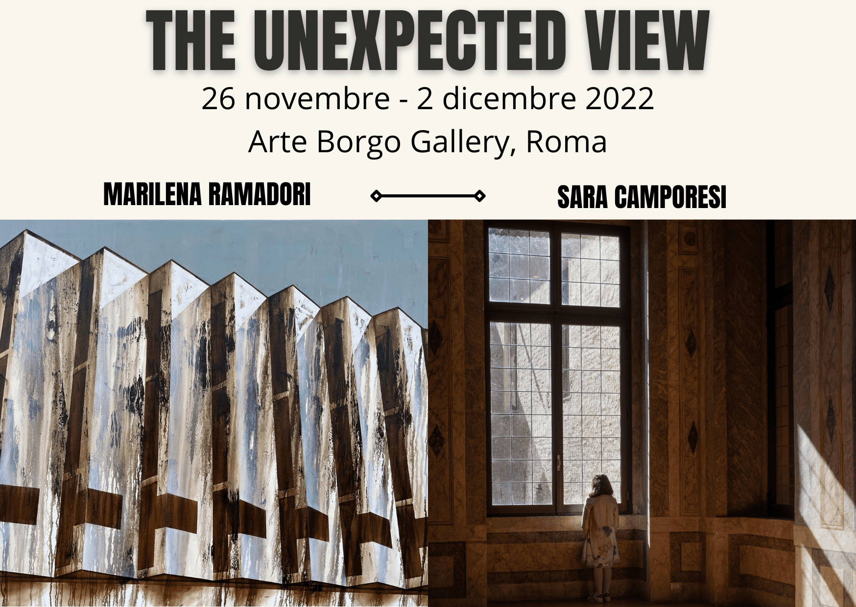 THE UNEXPECTED VIEW è la bipersonale curata da Anna Isopo e con presentazione della storica dell’arte Martina Scavone che verrà inaugurata il 26 Novembre 2022 alle 17:30 presso Arte Borgo Gallery. Protagoniste dell’esposizione sono Marilena Ramadori e Sara Camporesi.