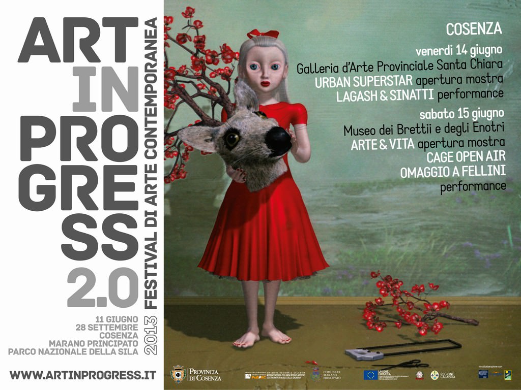 Cosenza, si inaugura venerdì 14 giugno la quinta edizione del festival d’arte pop surrealista THE URBAN SUPERSTAR SHOW curato da David Vecchiato, nell’ambito della seconda edizione del progetto Art In progress promosso dalla Provincia di Cosenza, in partenariato con la Soprintendenza per i Beni Storici Artistici ed Etnoantropologici della Calabria e il Comune di Marano Principato, in collaborazione con il Conservatorio “S. Giacomantonio” di Cosenza, il Parco Nazionale della Sila e l’Agenzia di mobilità transnazionale Euroform RFS.