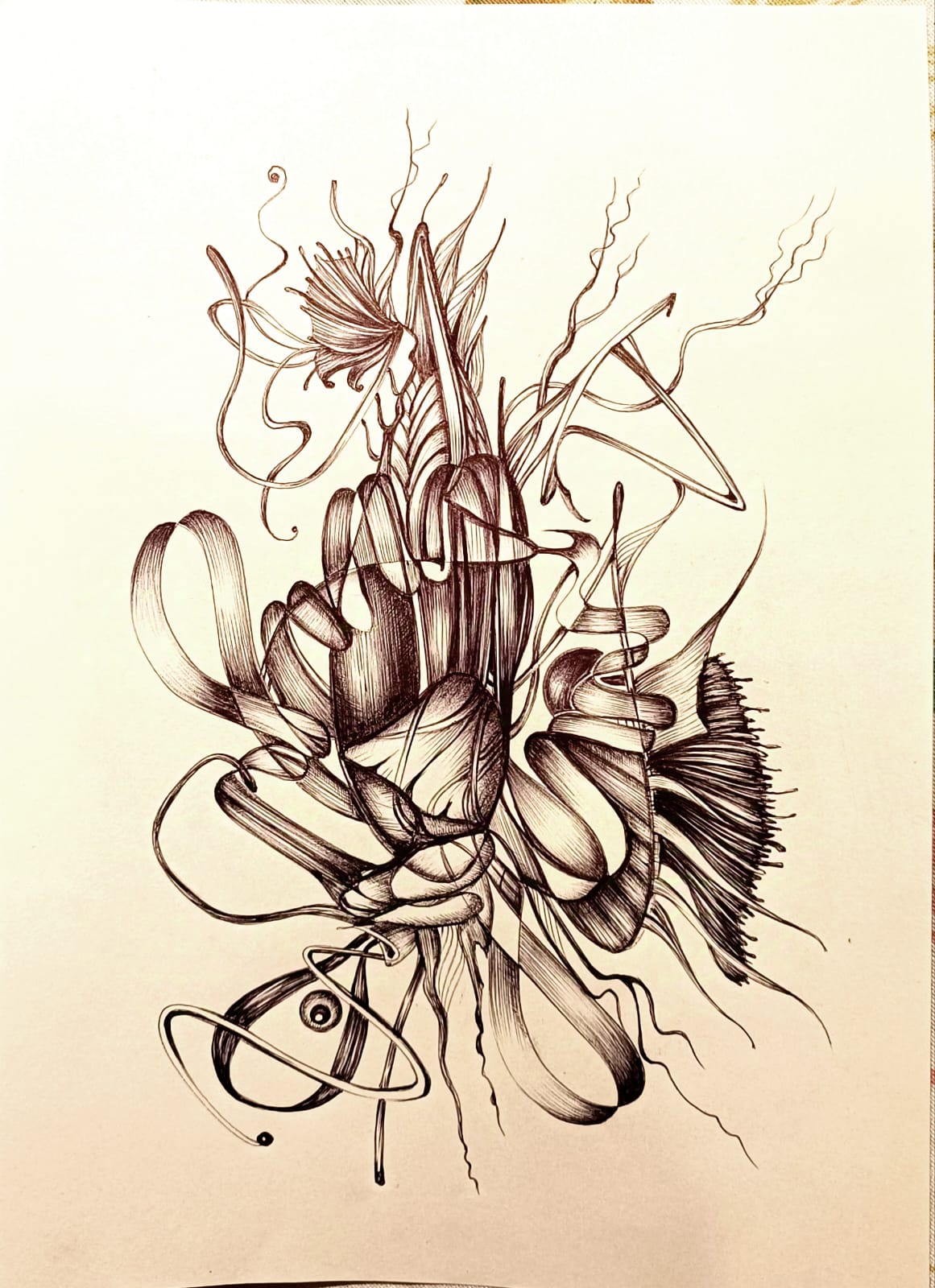La mostra personale di Birò si configura come un’avventura ai confini tra organico e artificiale, e invita il visitatore a immergersi in un universo ibrido in cui creature cibernetiche prendono forma attraverso il tratto essenziale e incisivo della penna a sfera. Nata a San Pietroburgo e laureata all’Accademia di Brera, Birò intreccia nelle sue opere la memoria personale con un immaginario globale, lasciando emergere in filigrana le sue radici culturali.