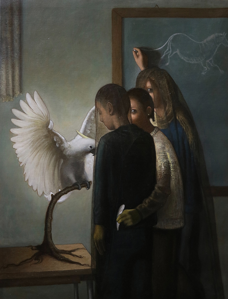Mattia Barbalaco, nato a Vibo Valentia nel 1999, si è recentemente laureato in Pittura con lode presso l’Accademia di Belle Arti di Roma. Narratore dall'indiscutibile abilità tecnica, Barbalaco immerge lo spettatore in una narrazione in cui molteplici filoni si svolgono misteriosamente, spesso in mezzo a una varietà di oggetti di scena e animali. Non è chiaro cosa stia accadendo esattamente e l'azione può essere sconcertante, ma c'è sempre la sensazione che per quanto l'atmosfera sia inquietante, complessa o sensualmente carica, lo spettatore può comunque riconoscere le emozioni in gioco.