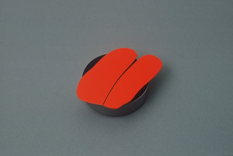 Non è un caso che Hilbert si sia occupata per anni del tema delle “emozioni”, la cui metafora più completa è notoriamente il vulcano, un fenomeno naturale di cui l’artista svizzera è ormai un’appassionata conoscitrice. Ha visto e scalato numerosi vulcani e da questa passione sono scaturite quelle opere: gioielli che coniugano coerentemente la coscienza geometrica e il calcolo astratto della forma con delicate sensibilità cromatiche ed elementi insoliti, talvolta sorprendenti che sbucano dai vasi contenitori quieti e disciplinati, facendosi sempre più spazio. Nei lavori più recenti troviamo sempre più in primo piano il tema dell’ardore. Spille a forma di cilindro vellutate e scintillanti o pendenti dai profili leggermente ondulati rivestiti da superfici laccate rosso fuoco che simboleggiano una consapevolezza, una libertà alla quale Hilbert si è accostata per lungo tempo e ora giunta alla piena maturità, un “ardore” che avvolge anche chi indossa i gioielli che al contempo lo assorbono o lo riflettono.