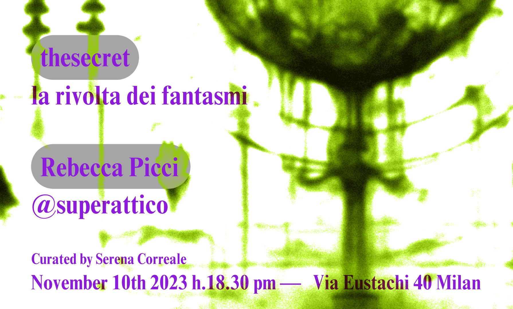 Venerdì 10 novembre 2023 alle ore 18:30 SUPERATTICO inaugura la mostra thesecret: la rivolta dei fantasmi. L’artista Rebecca Picci propone un’installazione che indaga il mondo contemporaneo appellandosi alla coscienza di un fantasma e alla sua riflessione sulla verità.