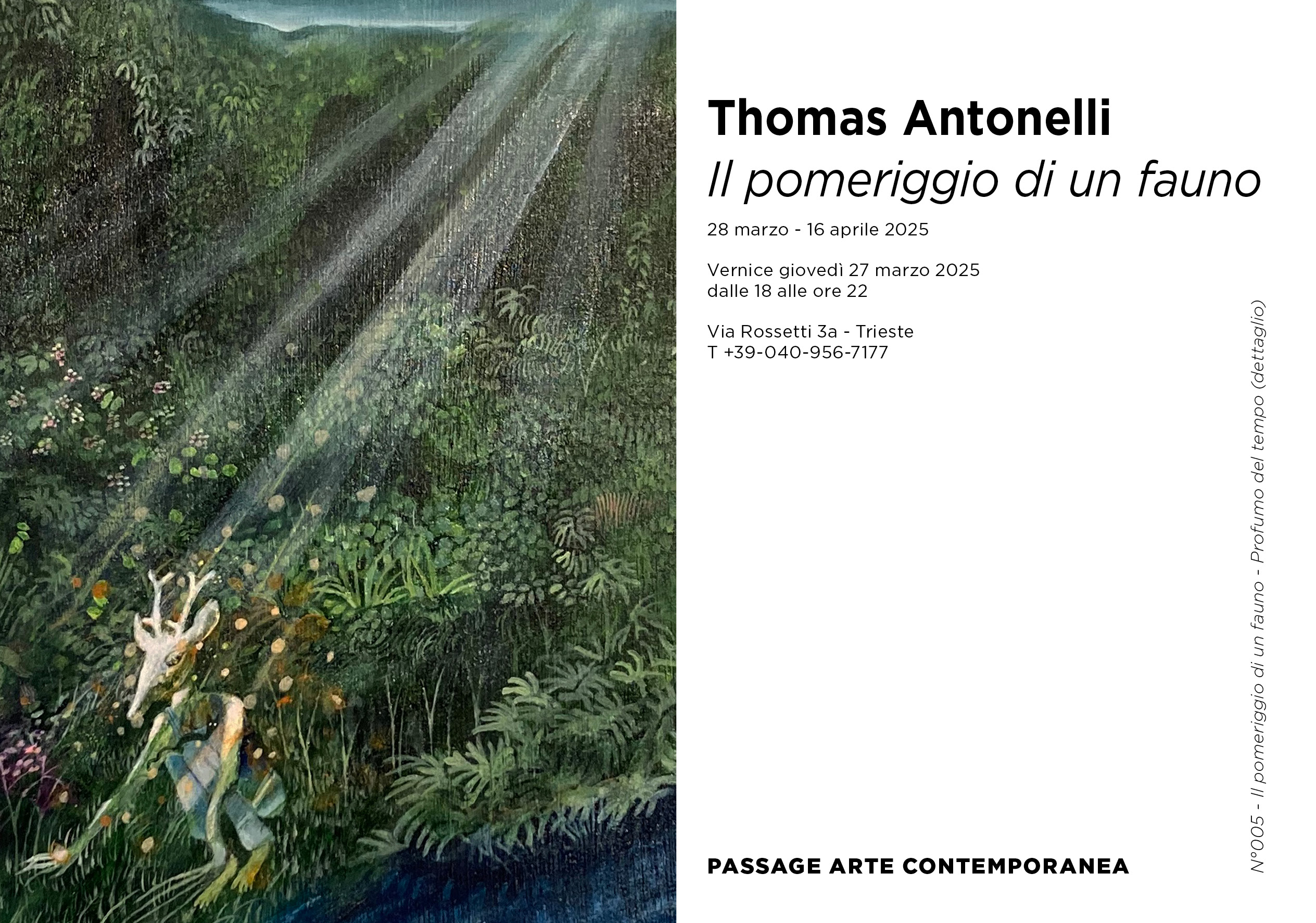 Il nuovo progetto pittorico visionario di Thomas Antonelli, che esplora le atmosfere oniriche e sensoriali legate alla natura e al mito. Attraverso la sua pittura crea un dialogo tra il mondo naturale e quello fantastico, invitandoci in un viaggio di scoperta, sospensione e introspezione.