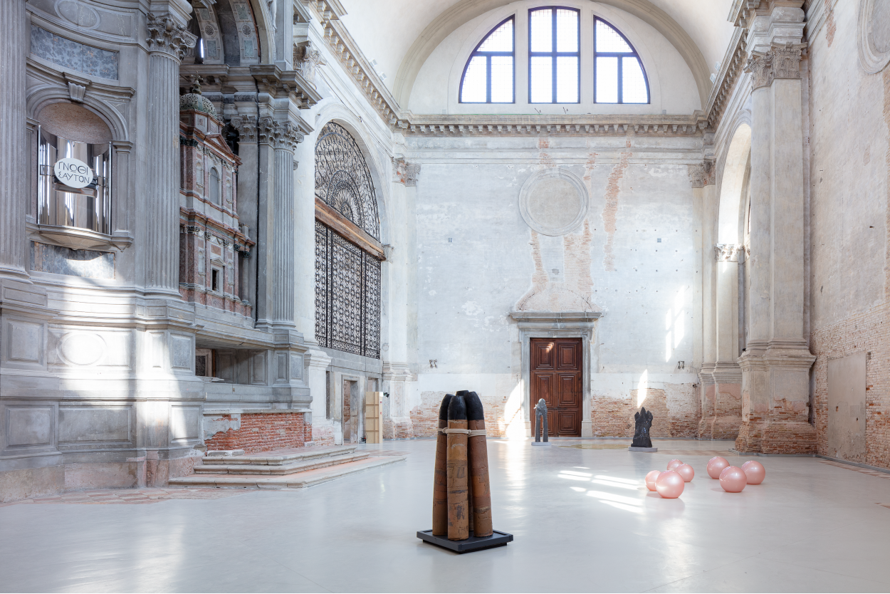 Nell'ala ovest della Chiesa di San Lorenzo, gli artisti Petrit Halilaj (nato nel 1986) e Álvaro Urbano (nato nel 1983), di base a Berlino, presentano una nuova installazione intitolata Lunar Ensemble for Uprising Seas (Ensemble lunare per mari in rivolta). L’opera crea un ecosistema in evoluzione composto da oltre 40 sculture monumentali di creature ibride, acquatiche, terrestri e aeree, collocate sotto una luna ovoidale, all’apparenza della stessa materialità delle pareti dell’edificio. L’installazione è co-commissionata da TBA21–Academy e Audemars Piguet Contemporary e mette in luce le missioni parallele dei due programmi: sostenere la ricerca e la produzione artistica, promuovendo il dialogo e il pensiero immaginativo per un pubblico globale.