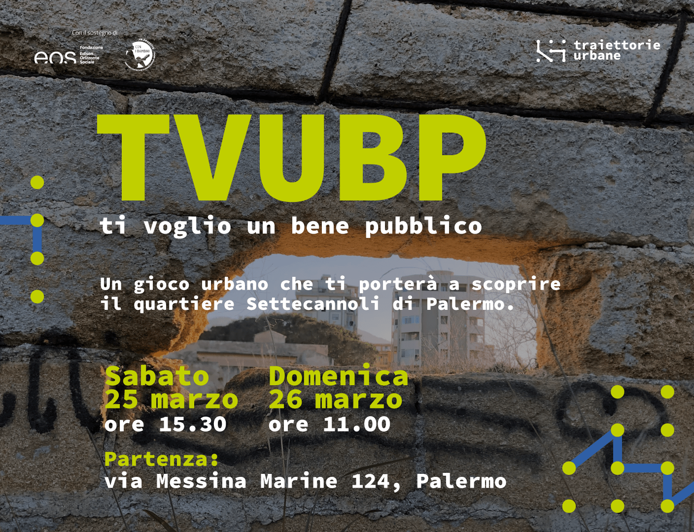 Ti voglio un bene pubblico è promosso Traiettorie Urbane che lavora per la creazione di nuove azioni partecipative e la promozione di nuove forme di protagonismo per i giovani che vivono e abitano nei quartieri Zisa-Noce-Danisinni, e i quartieri Kalsa-Sant’Erasmo-Romagnolo: due assi territoriali interessati da un nuovo percorso di valorizzazione dell’esistente e trasformazione territoriale. È qui che decine di ragazzi e le ragazze dagli 11 ai 17 anni prendono parte a tante iniziative che li rendono responsabili del loro ambiente e del loro modo di abitare, di essere cittadini attivi e consapevoli.