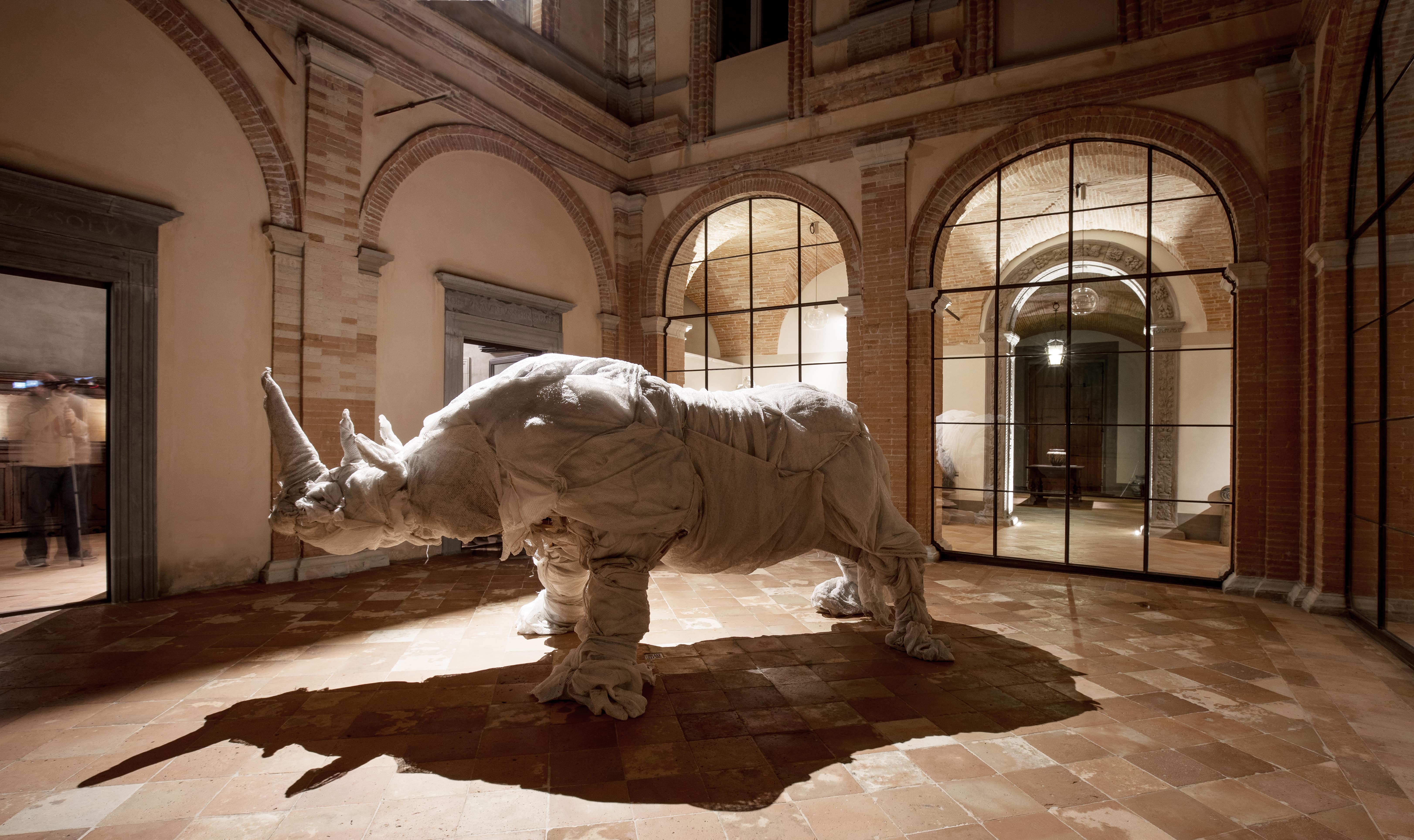 Le creature scultoree di Antonio Massarutto sono, invece, animali realistici e dai caratteri fisionomici ben delineati ma, allo stesso tempo, creature quasi leggendarie. Nella loro effimera struttura di legni intrecciati o reti metalliche, essi raccontano sia l’esattezza organica delle fiere che abitano i reali paesaggi naturali, sia l'eco della loro esistenza mitologica. L’ “opera zoologica” di Massarutto, sembra infatti far rivivere in chiave contemporanea e per il contemporaneo, la potente suggestione degli animali – esseri ad un tempo sovraumani e subumani – delle tradizioni popolari, come a richiamare alla necessità di un ritorno ad un’istintualità primigenia. La medesima con cui egli forgia le sue opere.