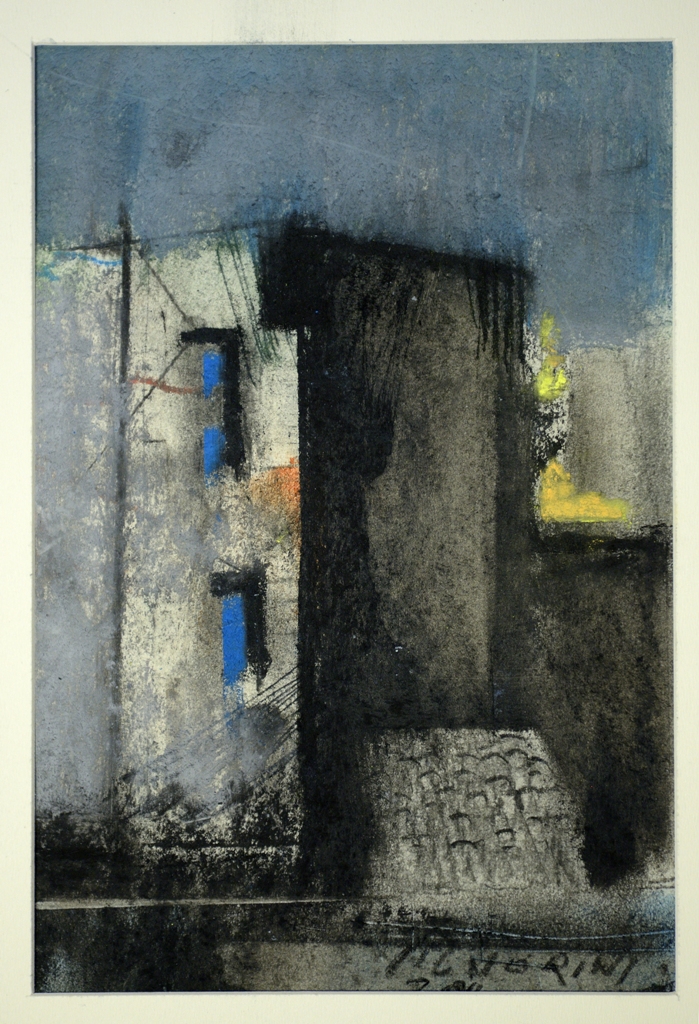 La tecnica è quella consolidata nel tempo, attraverso l’esperienza, e divenuta oggi cifra stilistica di un modo di costruire l’immagine per campi di ombra, attingendo alla materia stessa di cui è fatta la notte: l’inchiostro, il carbone, la creta nera, il contè.[...] Come fuochi d’artificio i bagliori cromatici esplodono dietro ai muri sberciati, sulle finestre illuminate, sui cartelloni pubblicitari, sulle tavole imbandite di interni domestici o nello studio dell’artista, in interni doppi che restituiscono il fascino della citazione, del quadro nel quadro. [...]