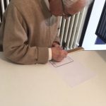 Nel settembre del 1991 Sabina Melesi apriva a Lecco il suo spazio espositivo inaugurando con una mostra personale del concittadino Tino Stefanoni. Nasceva così un rapporto di lavoro sulla base di un’amicizia che già legava l’artista ai genitori della gallerista, conosciuti sul finire degli anni Sessanta. Oggi, a oltre 30 anni di distanza, la mostra Rette incidenti ripresenta il lavoro di Stefanoni e vi affianca un altro artista, anche lui lecchese di nascita, ma di altra generazione. Stiamo parlando di Nicolò Tomaini, classe 1989, che fin da bambino sente parlare e vede le opere di Stefanoni. Intrapreso il lavoro di artista decide così di presentarsi a lui e di mostrargli la sua ricerca. Nasce subito una simpatia, il Maestro incoraggia il giovane artista a tal punto da voler realizzare delle opere a 4 mani da esporre in occasione della mostra Tridente a Roma. Insieme modificano il disegno icona di Tomaini e progettano il timbro di un nuovo “oggetto quotidiano” che non esisteva nelle Tavole di Stefanoni degli anni Settanta: lo smartphone; il cui retaggio è da sempre presente nei lavori di Tomaini. Il timbro viene realizzato ma nel frattempo Tino Stefanoni si ammala e il progetto a 4 mani purtroppo si ferma.