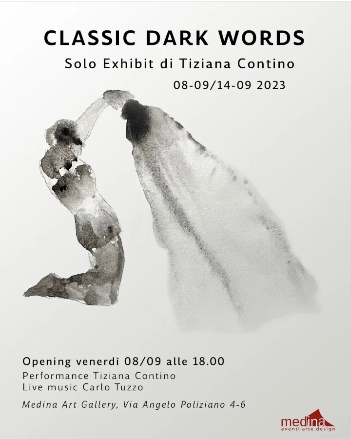 Dall’ 8 al 14 settembre 2023 Medina Art Gallery presenta “Classic Dark Words”, mostra personale di Tiziana Contino nella galleria di Via Angelo Poliziano 4-6.