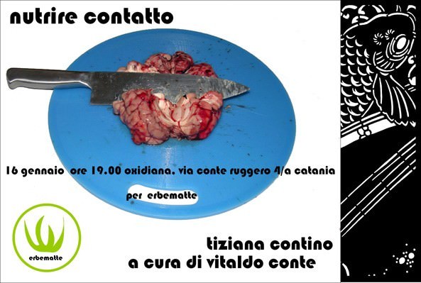 Nell'evento della catanese Tiziana Contino ritrovo creativamente questa estensione che si dilata per una conoscenza epidermica e comunicazione fuori-limite. Il "Nutrire Contatto" è compiuto per ricercare un sentire naturale e primordiale, scandito dall'imprevedibilità di una cena-performance con i suoi 'imboccamenti': i movimenti del Butoh, la danza delle Tenebre, la mixano (dentro e fuori). La CibAzione diviene una frontiera-maschera per gli accadimenti e i rituali dell'ultima arte corporale. Il sadismo può rappresentare la molla dell'esistenza e del rapporto ritmico con l'arte, soprattutto quello espresso dalla danza, in questa dinamica genitrice di tutte le arti.