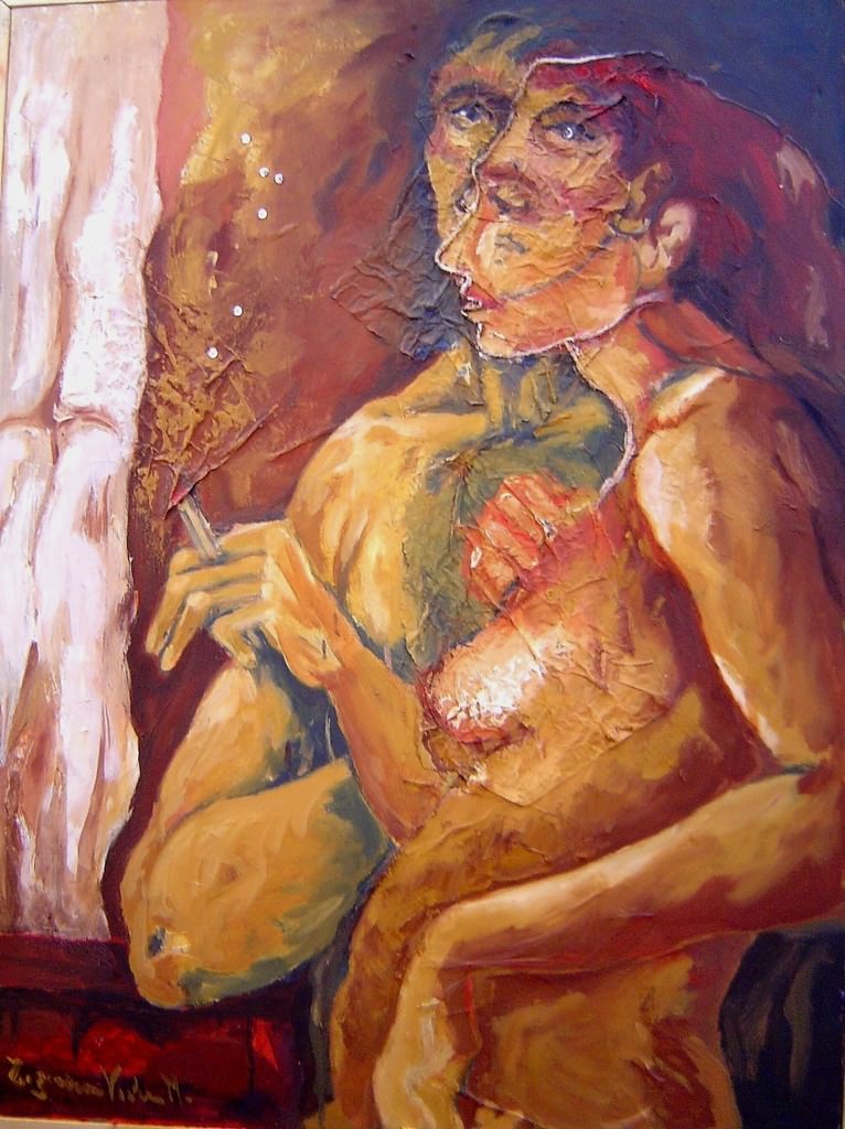"Nei quadri dell'artista palermitana emerge una strana dicotomia tra ciò che è reale e ciò che non lo è; tra ciò che è vita quotidiana e ciò che è l'essenza della vita stessa. Forse Tiziana Viola Massa riempie le sue tele di corde, carta, stracci, per non far volare troppo in alto i suoi soggetti. Ella àncora la loro essenza nella trama della tela bloccando ogni spinta ultraterrena e facendo modellare le forme da lei dipinte dallo spazio, dalla luce e dallo spirito che tutto pervade.Sulle superfici dei suoi quadri, corpi di giovani amanti si legano in caldi amplessi. Due figure diventano una, nell'estasi dei sensi".
