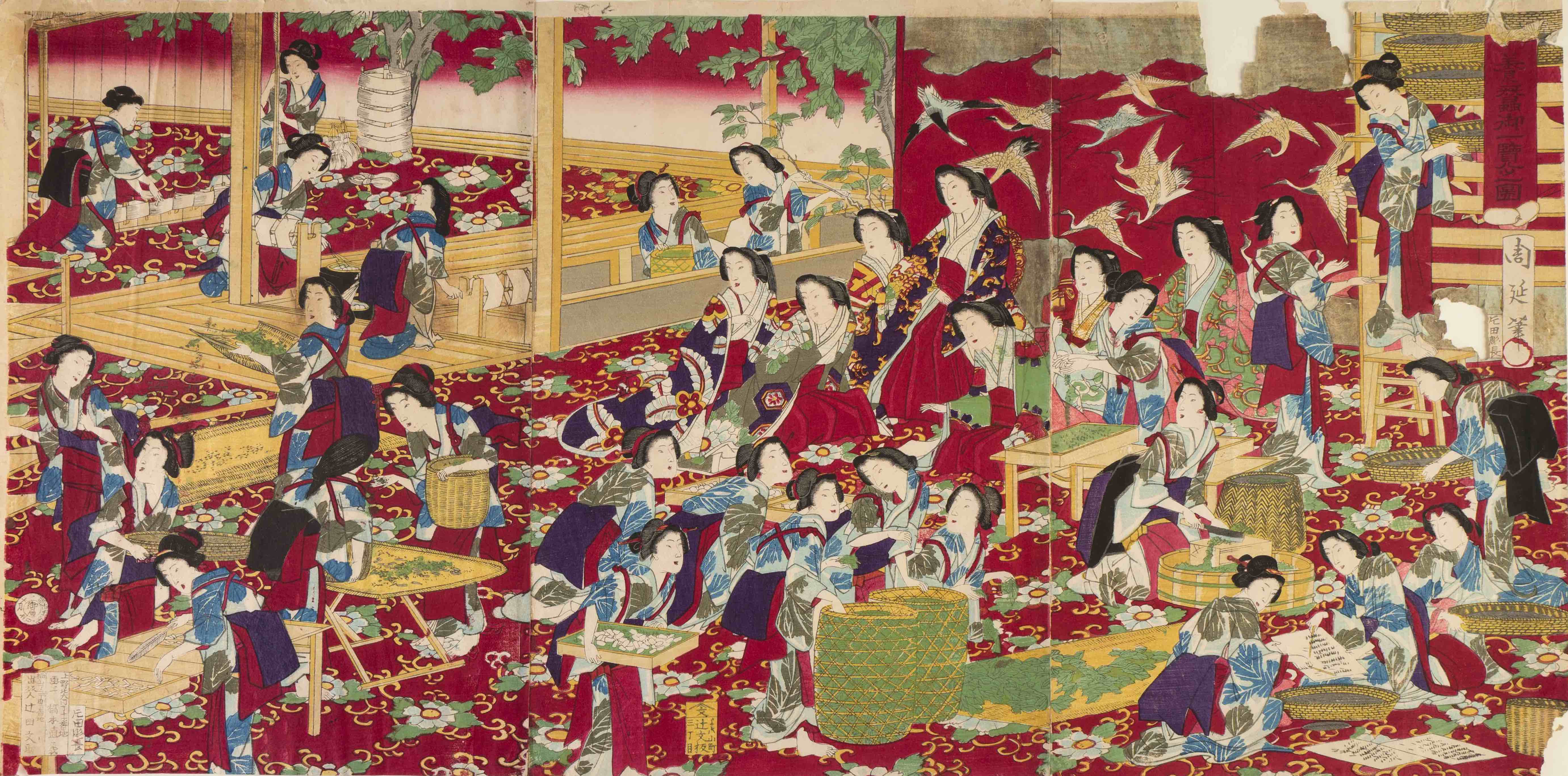 Nel cuore della mostra, il valore dell’heritage emerge attraverso un prodotto e una fibra che rac-contano storie secolari: la seta. Come una testimone che attraversa il tempo, diventa il filo condut-tore che lega Como alla tradizione tessile giapponese. Grazie alla riproduzione di opere tratte dall’archivio del Museo d’Arte Orientale Mazzocchi e dell’associazione Mnemosyne la tradizione giapponese rivive nelle trame di stoffa. Le immagini raffigurate in questa sezione della mostra, sono tre opere in tessuto che raccontano il passato e riflettono la continuità della tradizione. Tra queste, alcune opere sono state estrapolate dai quaderni originali di Hokusai.