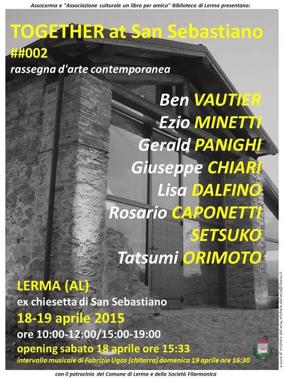Together at ##002 propone quattro artisti internazionali Ben Vautier, Giuseppe Chiari, Tatsumi Orimoto ”Bread Man” e Gerald Panighi, due under 30, Rosario Caponetti e Lisa Dalfino e due artisti del “territorio” Ezio Minetti e Setsuko. Presso la Chiesa di San Sebastiano