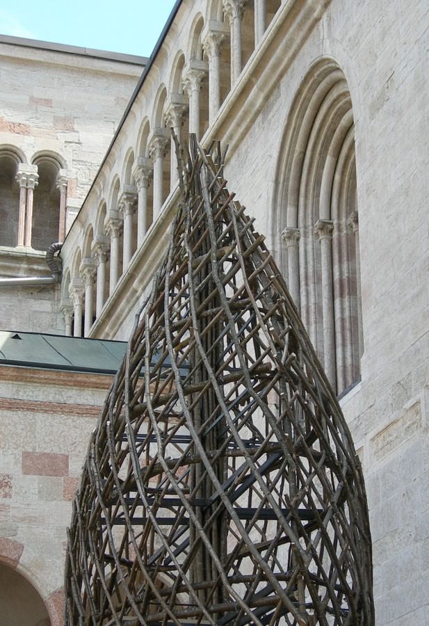 Sarà inaugurata l’opera di Tomaso Marcolla, un albero realizzato con l’intreccio di rami di nocciolo che ricalca la forma della Mitria Vescovile. La cerimonia prevede la collocazione, all’interno della struttura dell’albero/Mitria, della Lanterna di S. Vigilio.