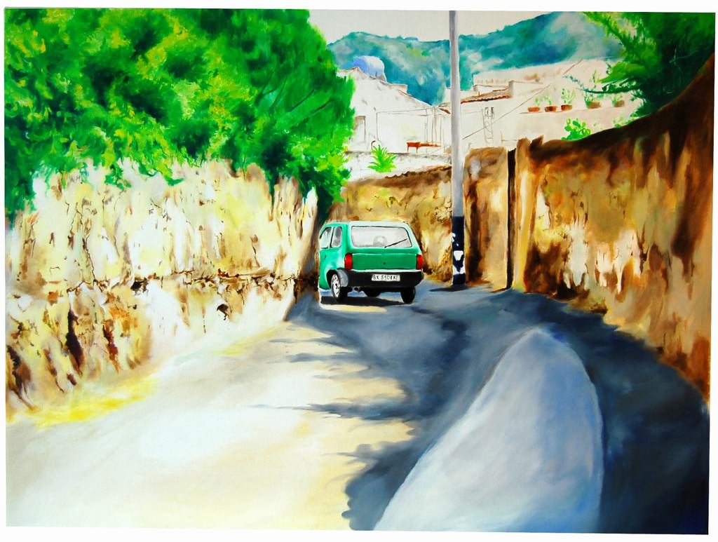 “Tommaso osserva il paesaggio panormita e quello milanese e lo riproduce a suo modo. Le palme, le strade, il mare di Palermo e la gente “voltata di schiena”, le atmosfere milanesi: ogni immagine visualizza e raffigura uno spazio in cui i soggetti e i luoghi sono dinamismo e fissità, presenza e assenza, inevitabilmente parte di un flusso vitale eppure come sospesi. Sono per lo più spazi a cui la memoria dell’artista, “sradicato” dalla sua città, attribuisce un valore connotativo e referenziale. Questi, sono luoghi di transito oppure non luoghi della frenetica vita metropolitana, in cui apparentemente i soggetti non sono in relazione tra loro.